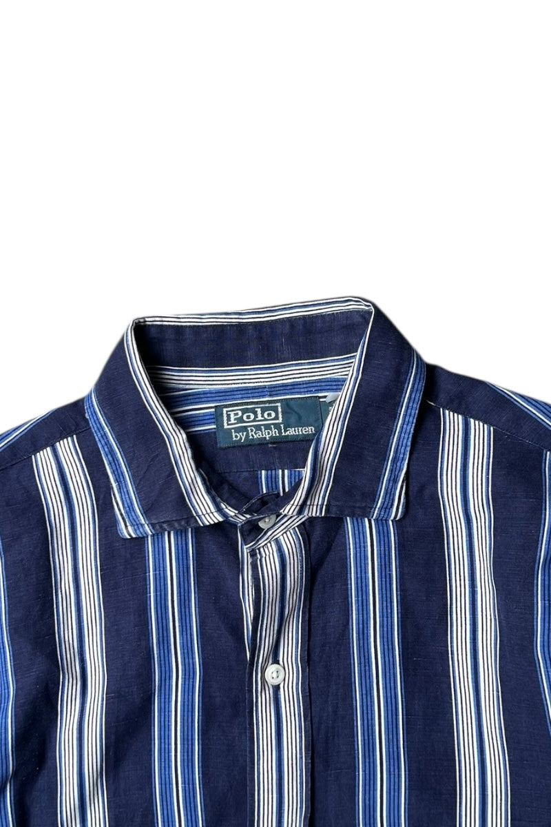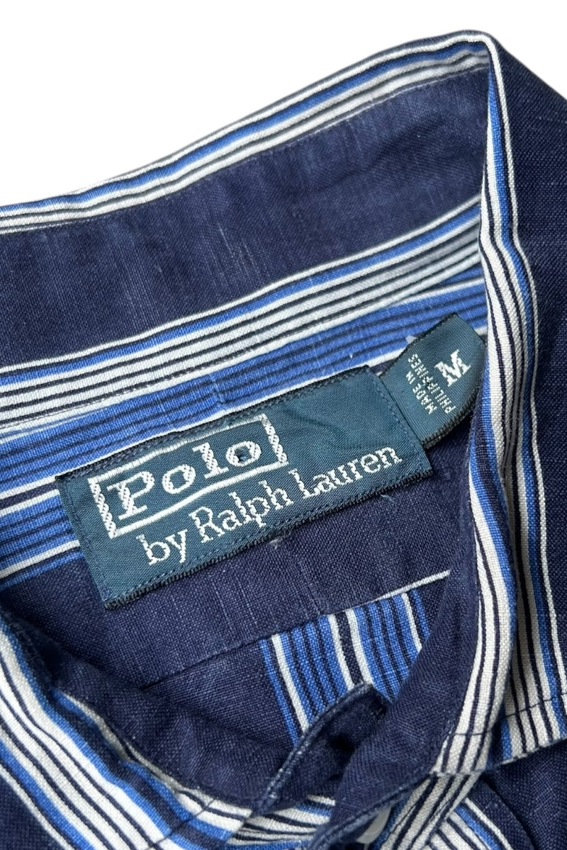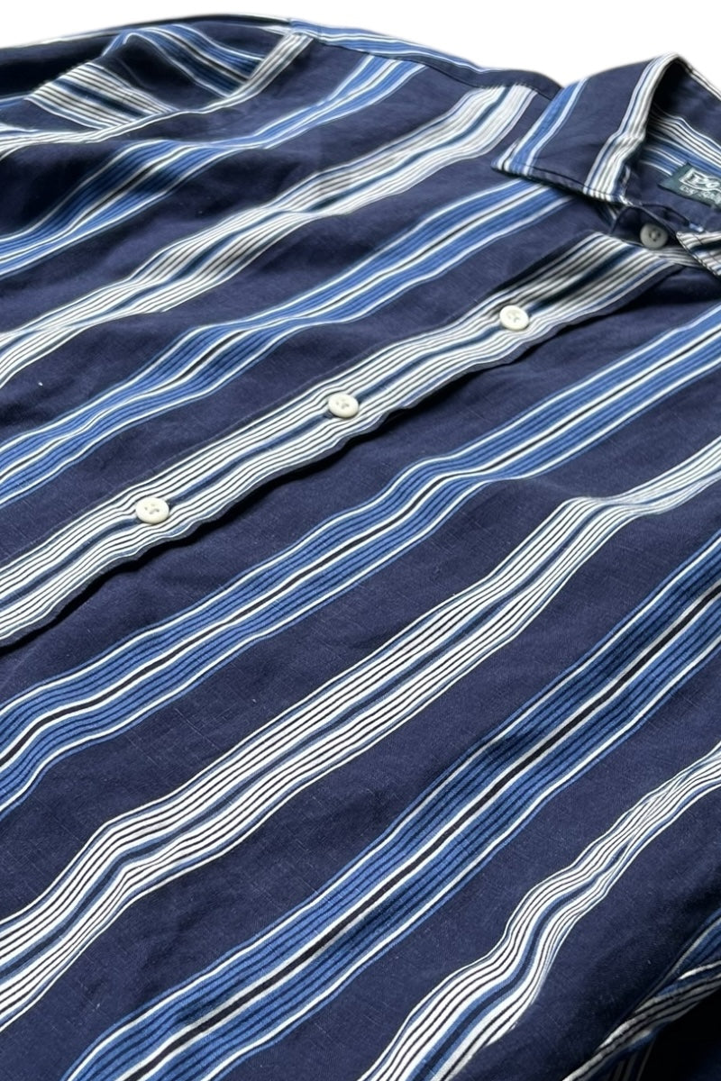 90'S L/S LINEN SILK STRIPE SHIRT / NAVY [SIZE: M USED]