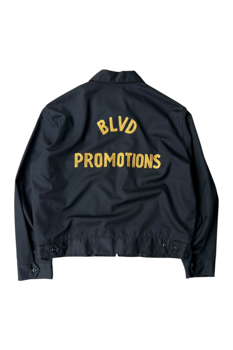 70-80'S CHAIN STITCH EMBROIDERED ZIP CORPORATE PROMOTION JACKET W/LINER / BLACK [SIZE: L USED]