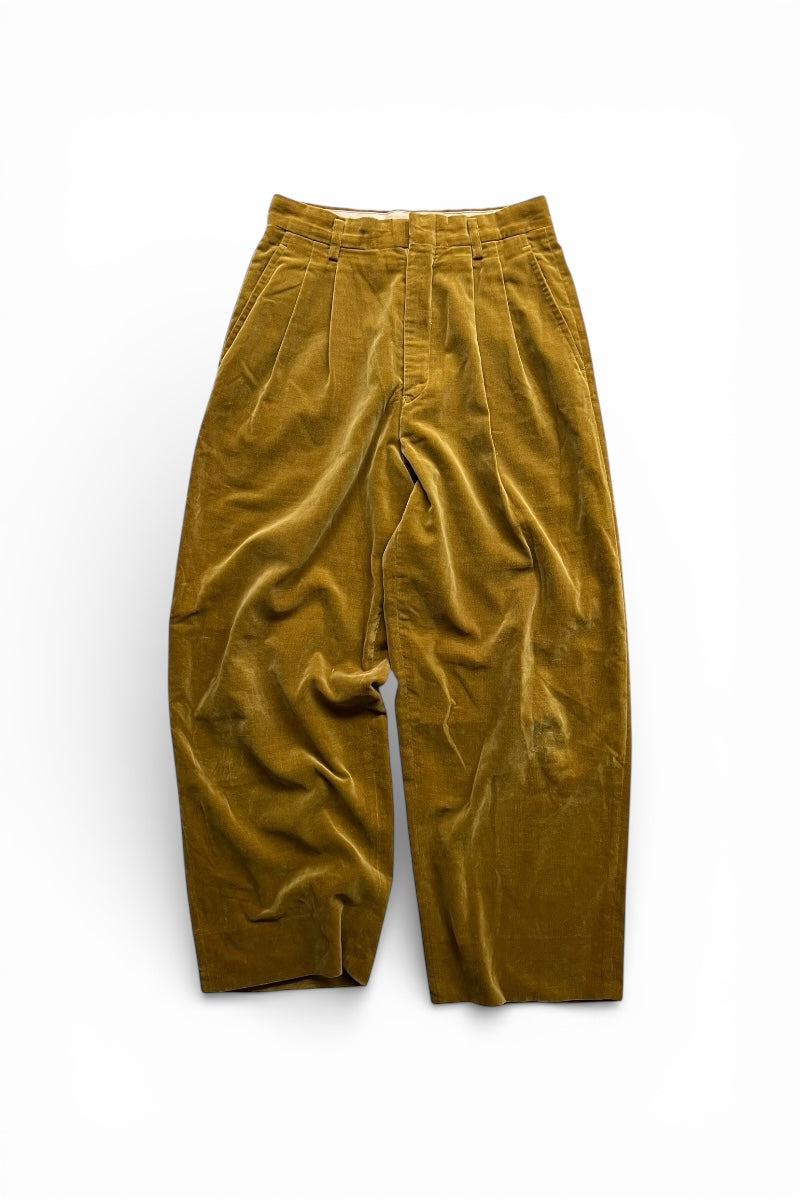 MADE IN JAPAN 80-90'S VELOUR SLACKS PANTS / YELLOW [SIZE: S USED]