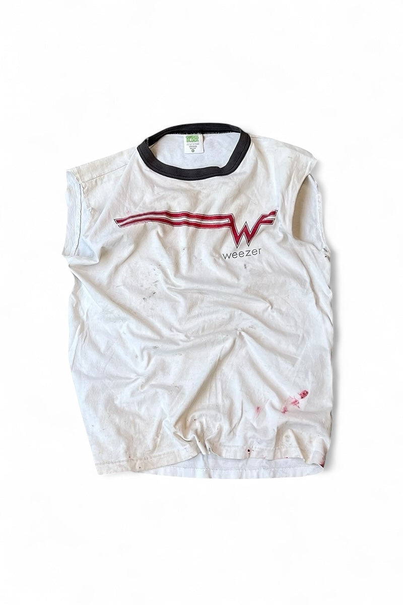 MADE IN USA 90'S WEEZER NO SLEEVE BAND T-SHIRT / WHITE [SIZE: L USED]