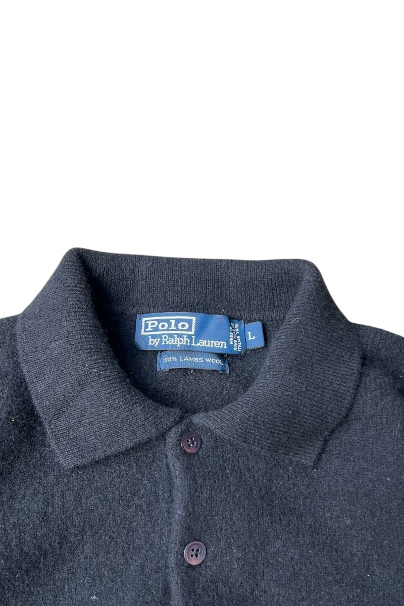 90'S L/S WOOL POLO SHIRT / BLACK [SIZE: L USED]