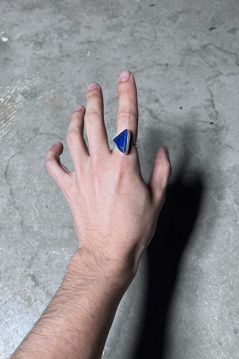925 SILVER RING W/LAPIS LAZULI / SILVER [SIZE: 16号相当 USED]