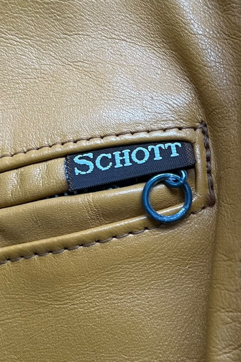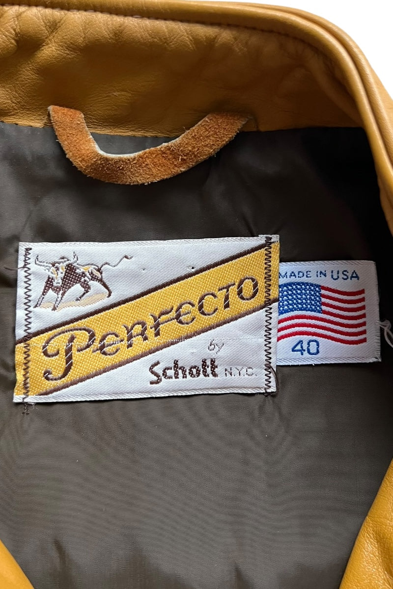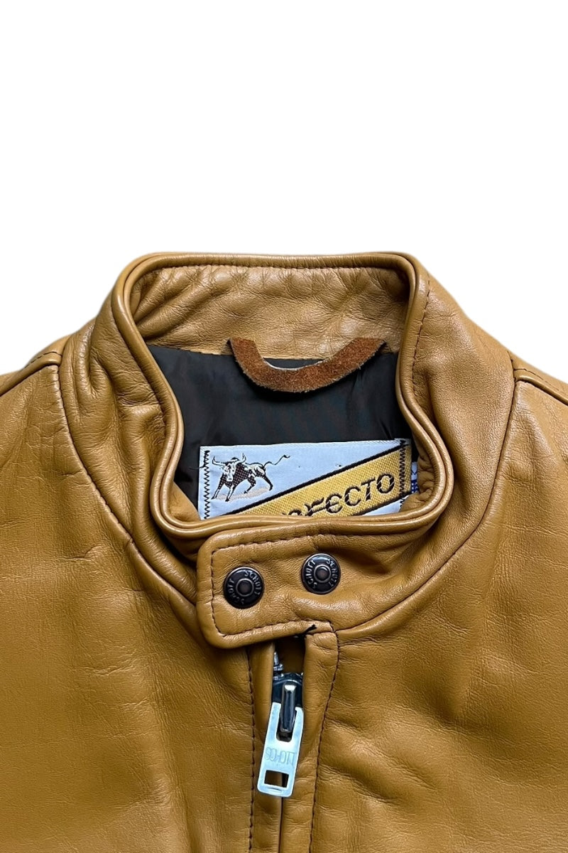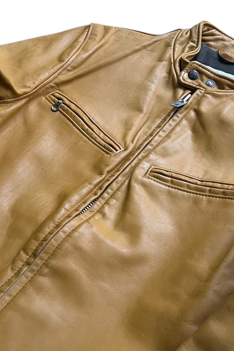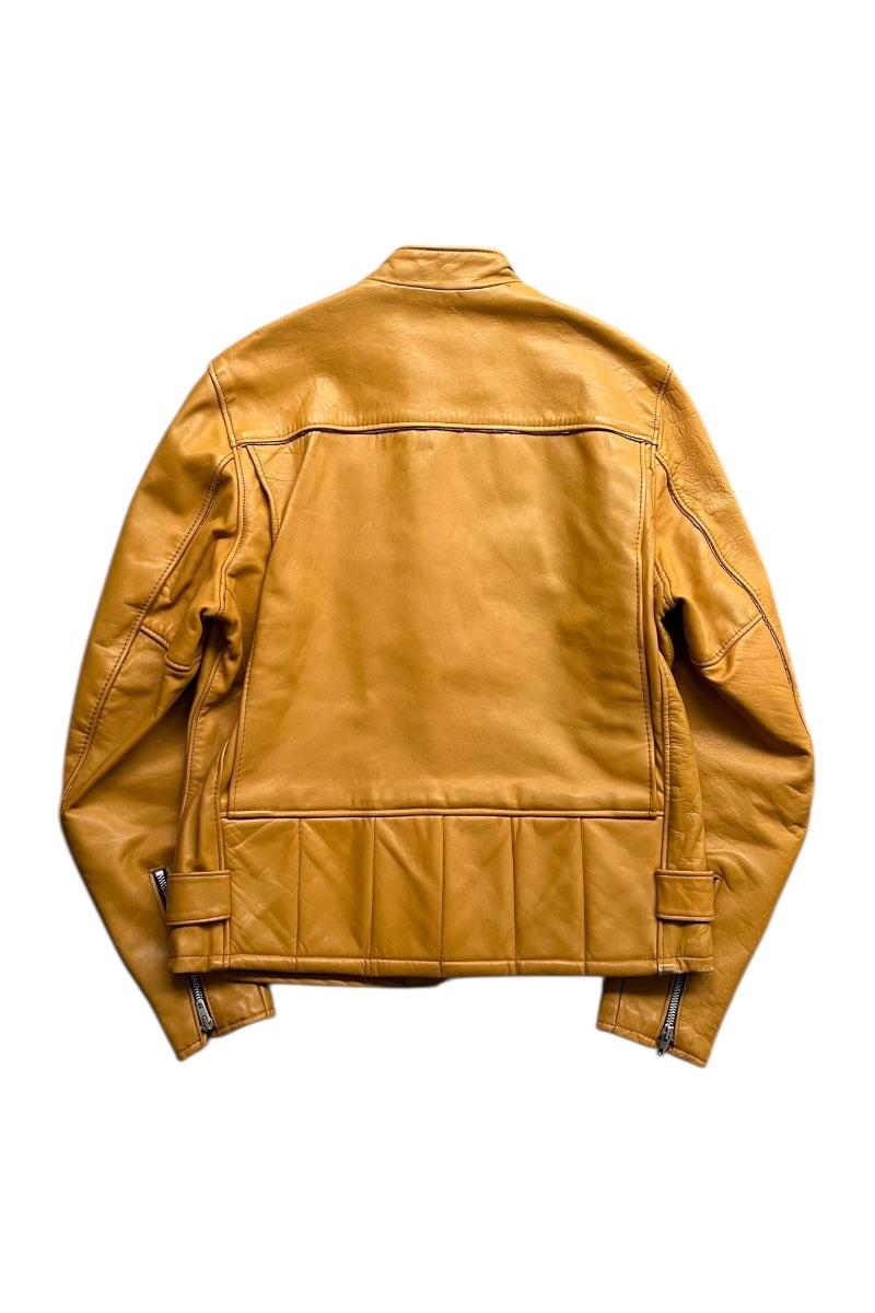 MADE IN USA 70'S ZIP LEATHER SINGLE RIDERS JACKET MUSTARD / YELLOW [SIZE: 40 USED]