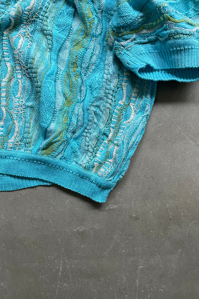 MADE IN AUSTRALIA 90'S S/S 3D KNIT POLO SWEATER / BLUE [SIZE: XL USED]