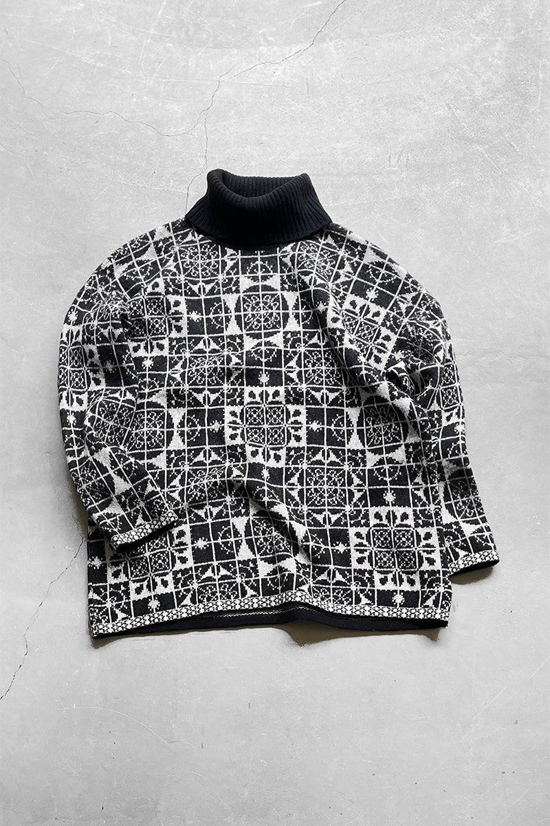 MADE IN ITALY 90'S GEOMETRIC PATTERN TURTLE NECK KNIT SWEATER / PATTERN [SIZE: L USED]