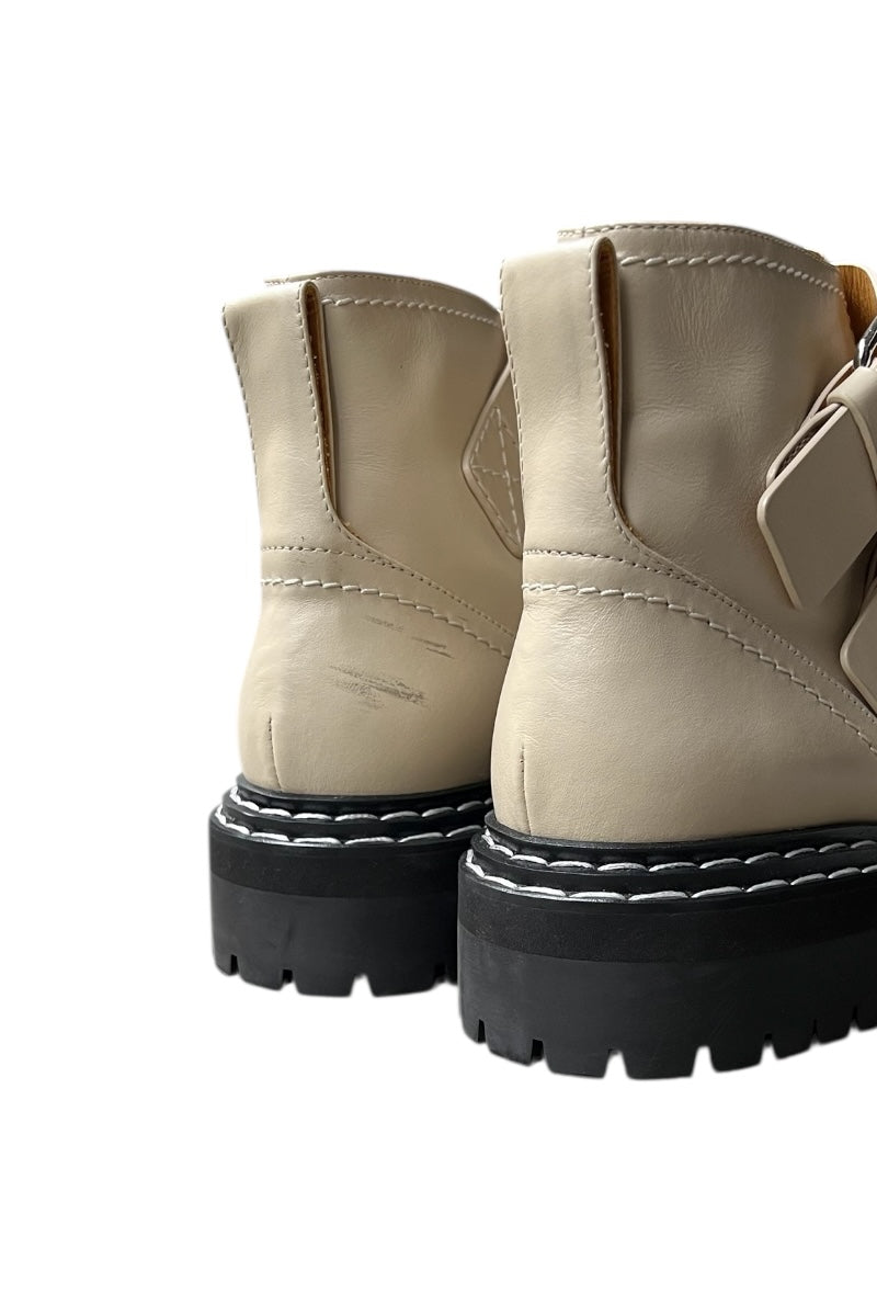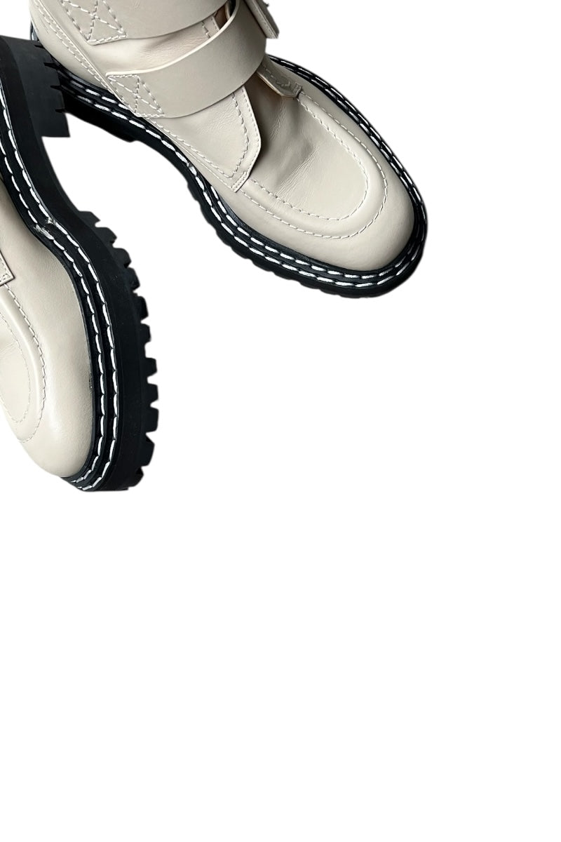 MADE IN ITALY LEATHER BUCKLE BOOTS / OFF WHITE [SIZE: 39 (27cm相当) DEADSTOCK/NOS]
