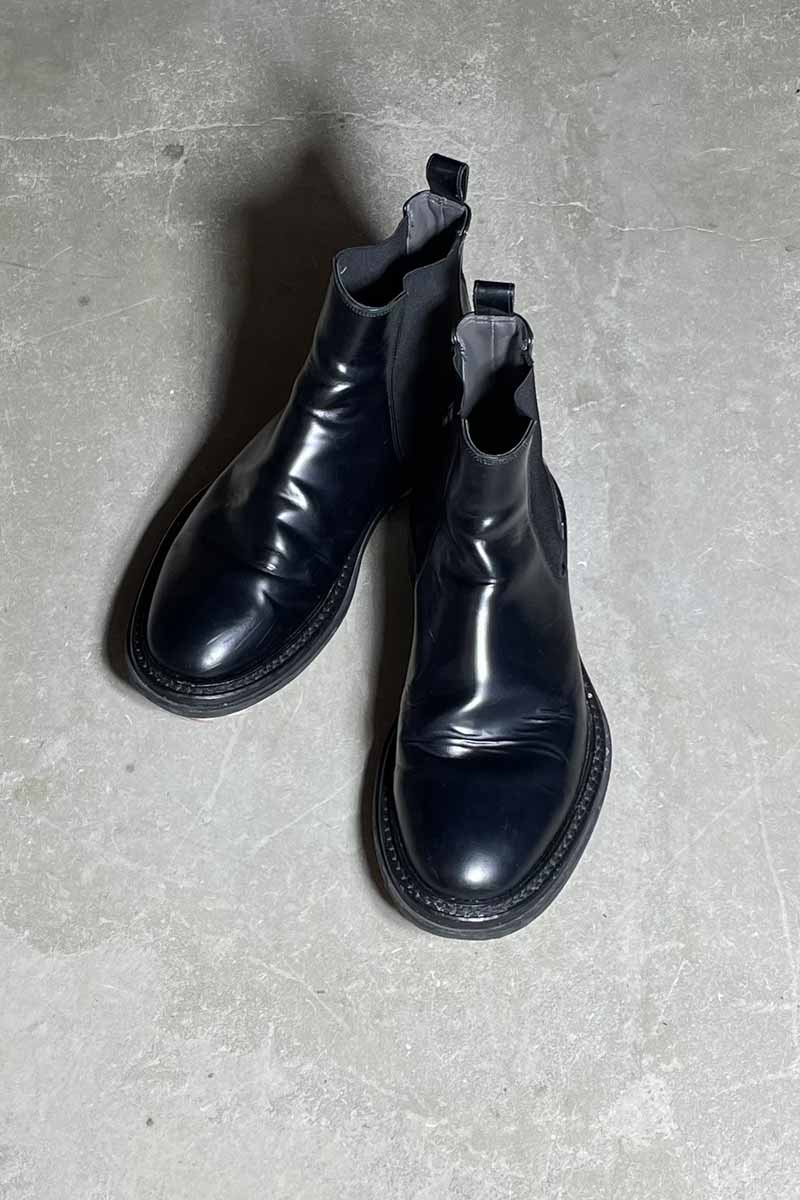 MADE IN ITALY SIDE GOA LEATHER BOOTS / BLACK [SIZE: US8.5(26.5cm相当) USED]