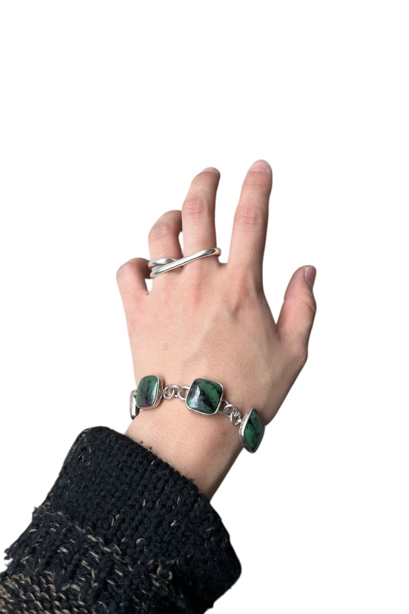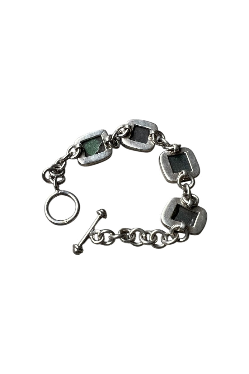 • 画像をギャラリービューアに読み込む, 925 SILVER BRACELET T-BAR W/GREEN STONE / SILVER [SIZE: ONE SIZE USED]