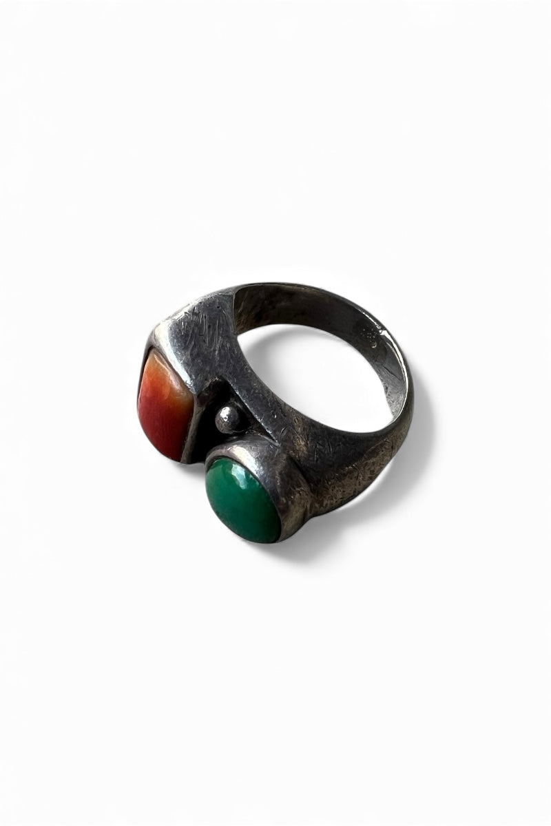 925 SILVER RING W/CORAL / SILVER [SIZE: 17号相当 USED]