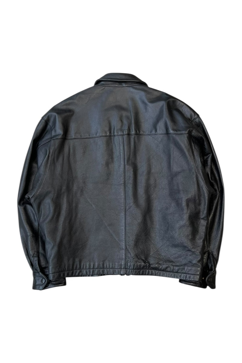 90'S ZIP UP LEATHER JACKET / BLACK [SIZE: M USED]