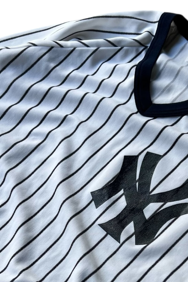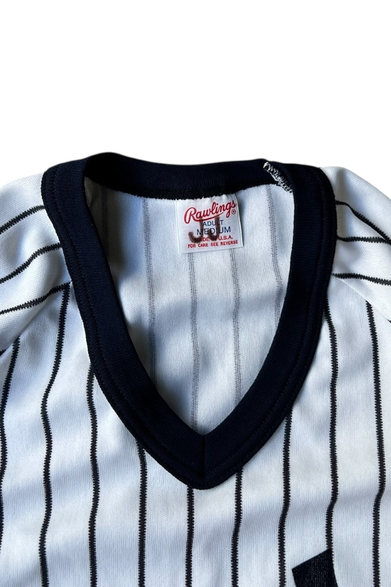 MADE IN USA 80-90'S NY YANKEES V-NECK T-SHIRT / STRIPE [SIZE: M USED]
