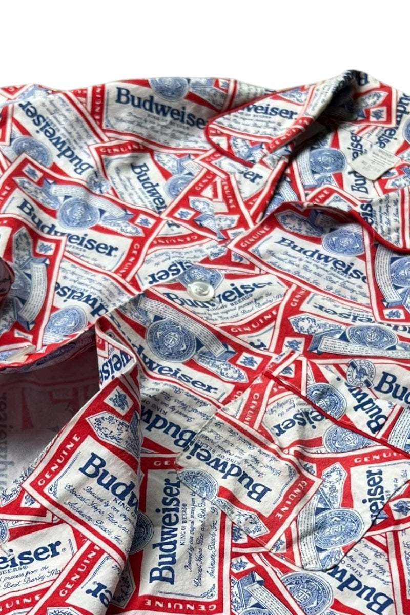 MADE IN USA 80'S BUDWEISER L/S PAJAMA SHIRT / PATTERN [SIZE: M USED]