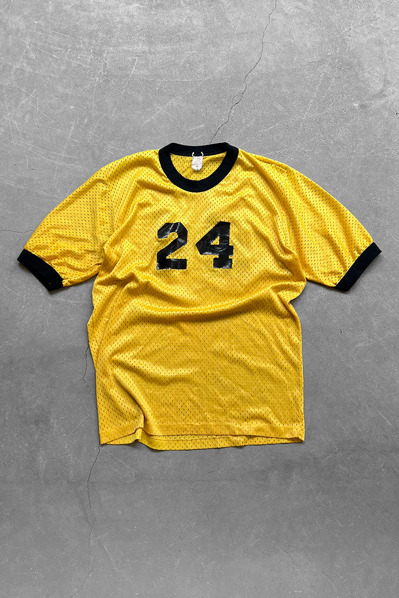 MADE IN USA 80'S MESH GAME T-SHIRT / YELLOW [SIZE: M USED]