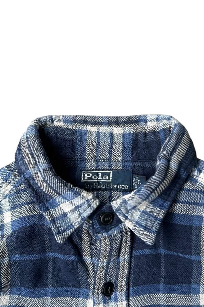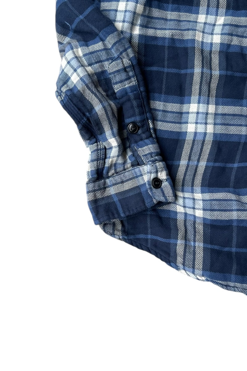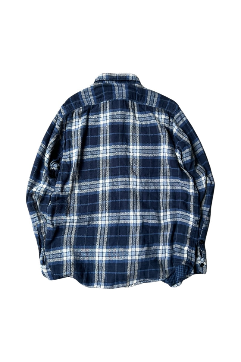 90'S L/S FLANNEL CHECK SHIRT W/GINGHAM CHECK LINER / BLUE [SIZE: L USED]