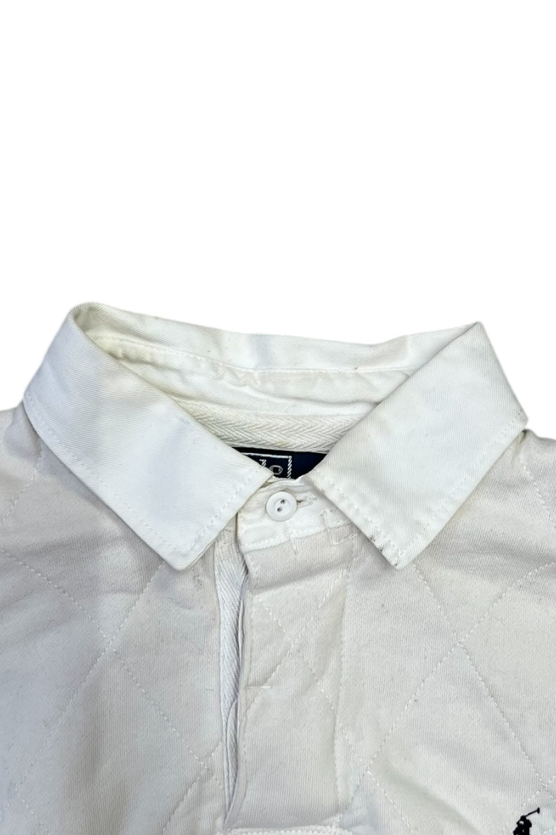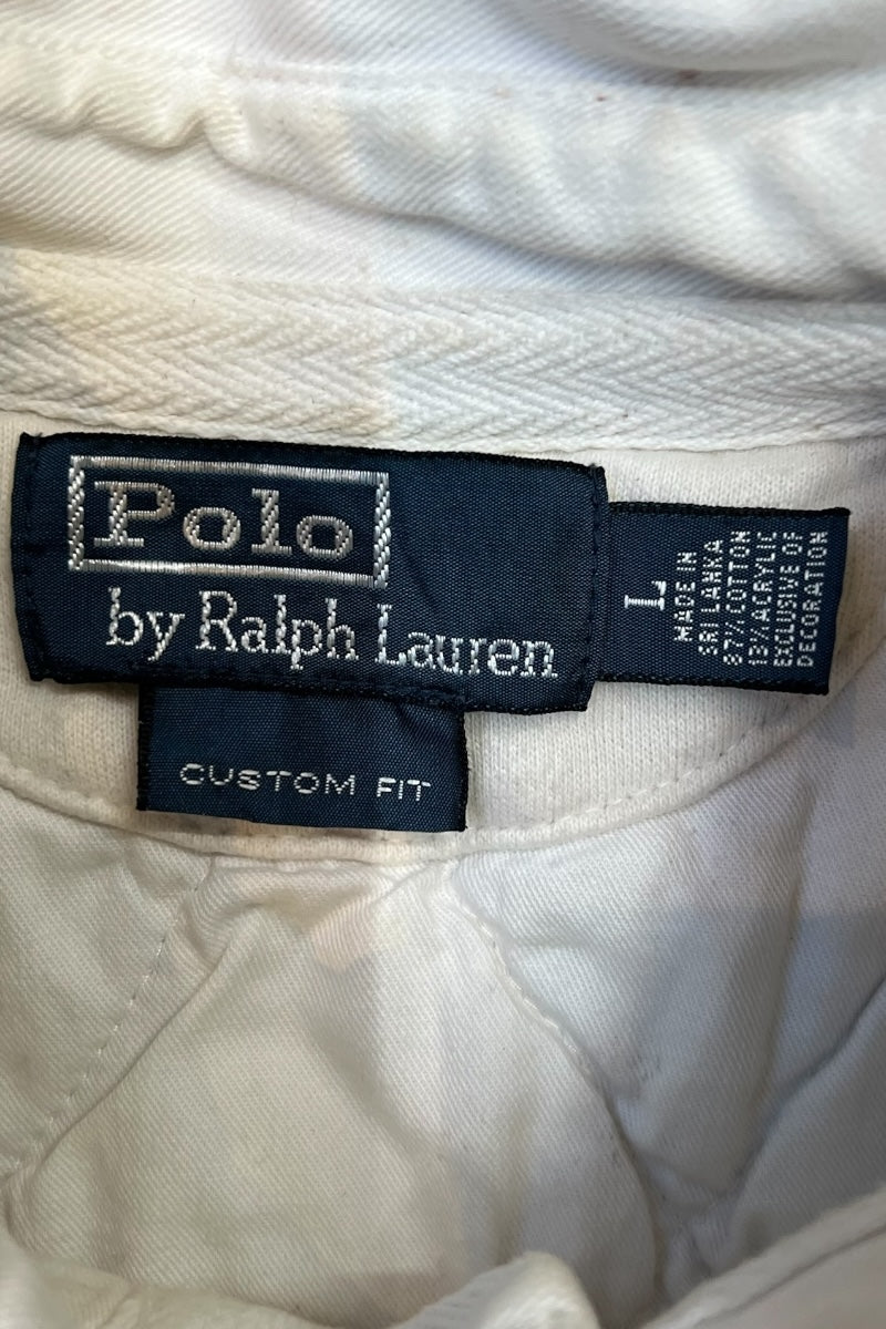 90'S L/S RUGBY SHIRT CUSTOM FIT / WHITE [SIZE: L USED]