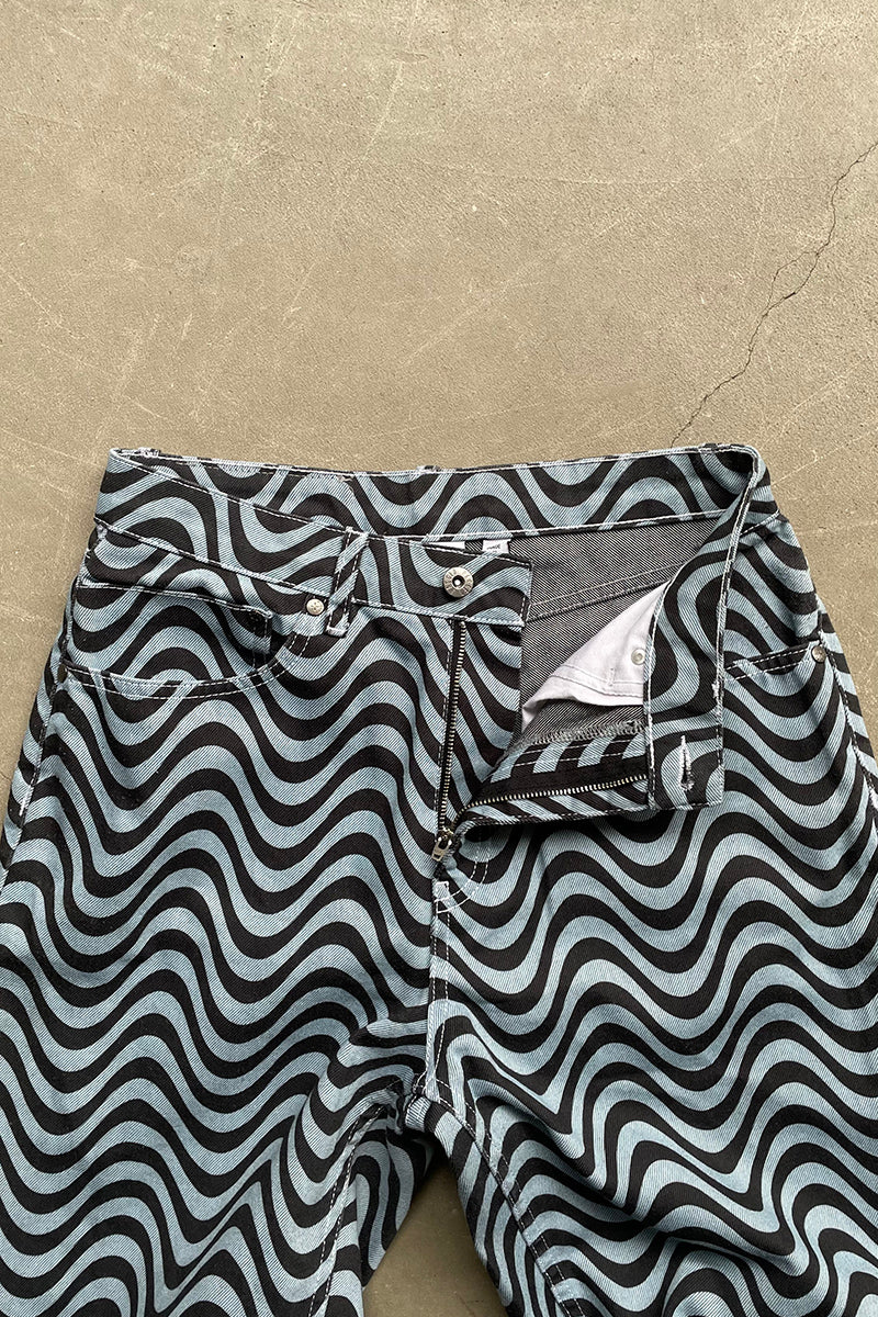 WAVE PATTERN DENIM PANTS / BLUE [SIZE: 28 USED]