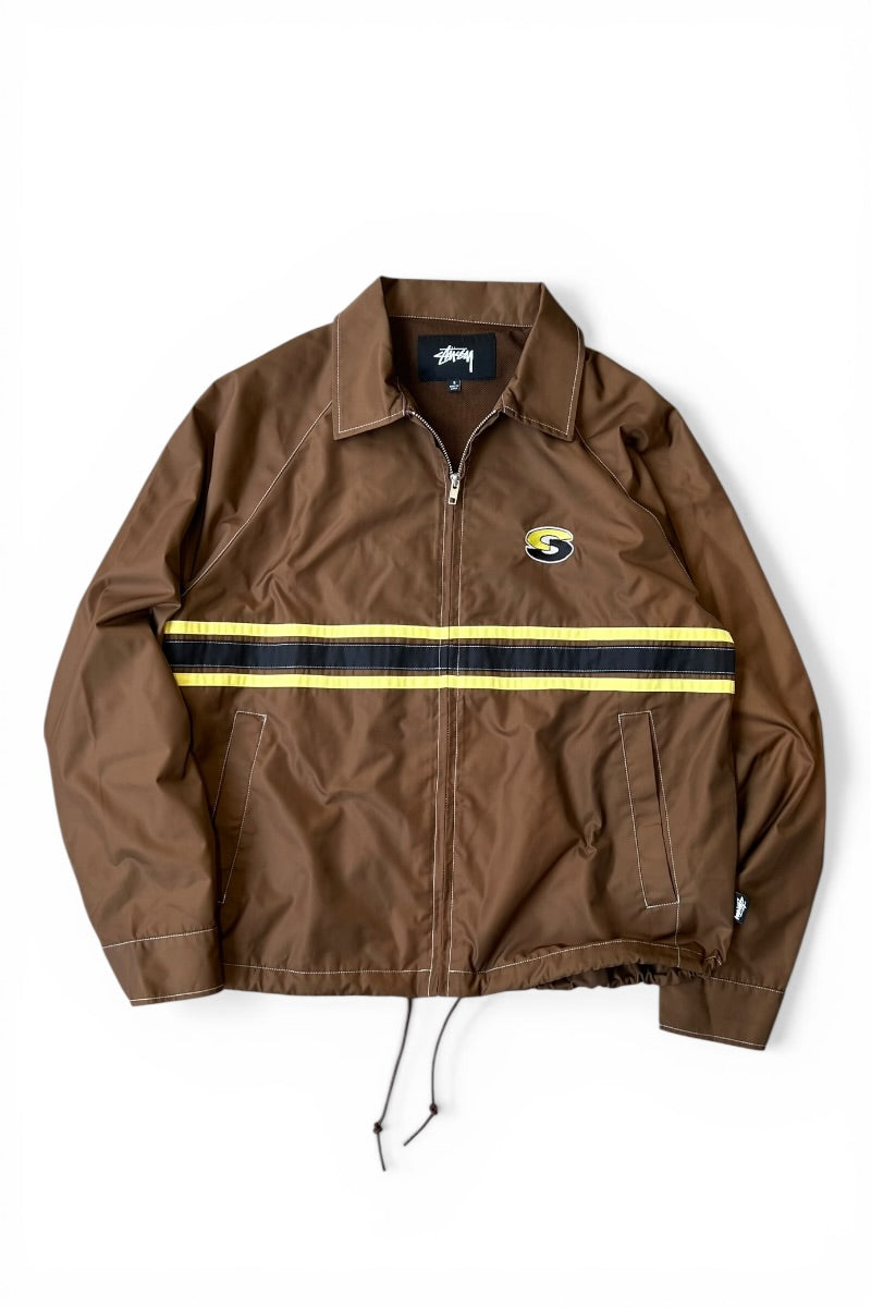 STRIPE ZIP NYLON JACKET / BROWN [SIZE: S USED]