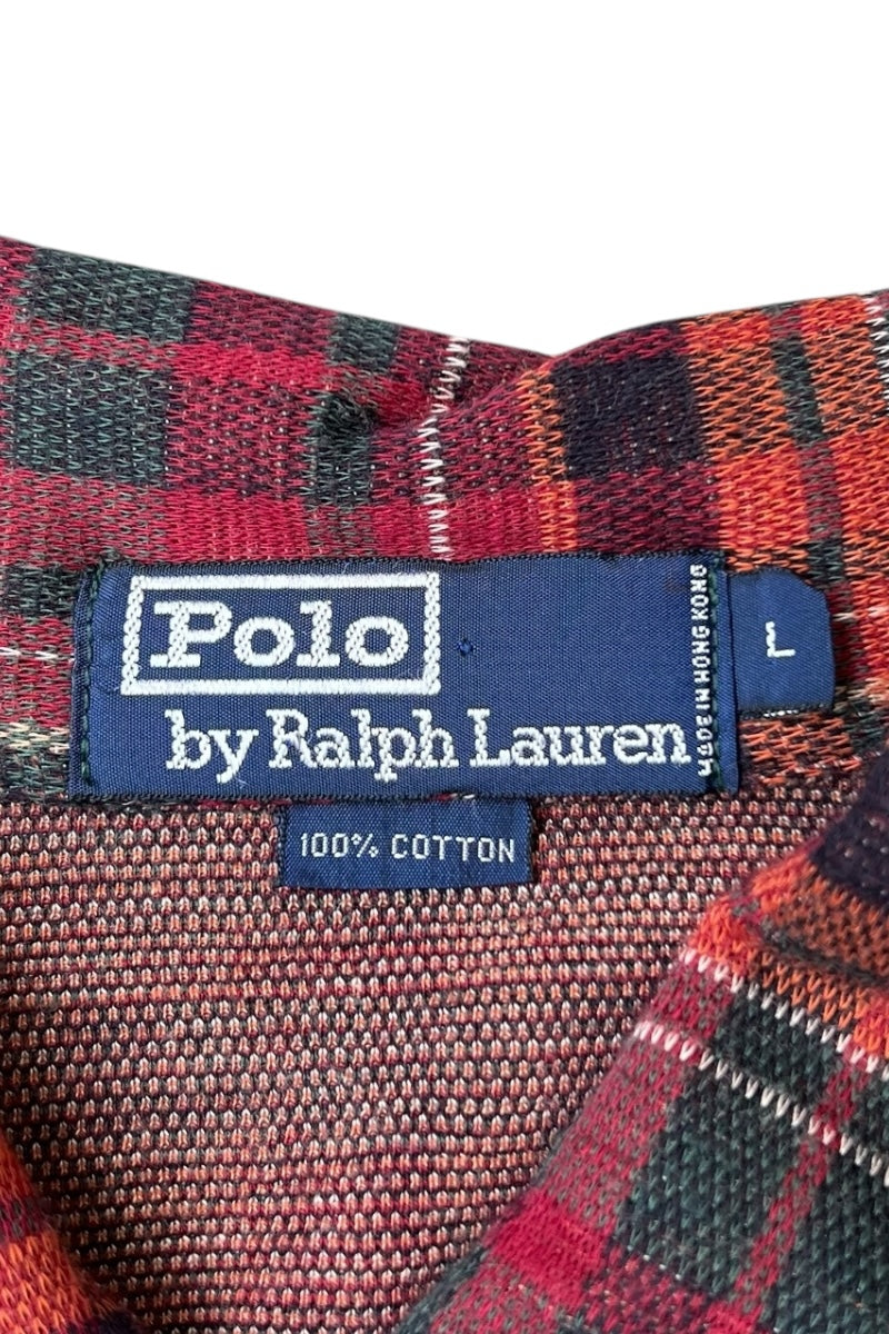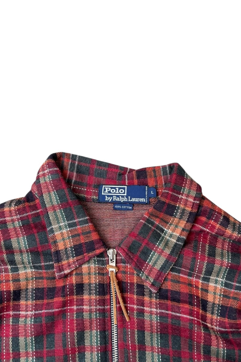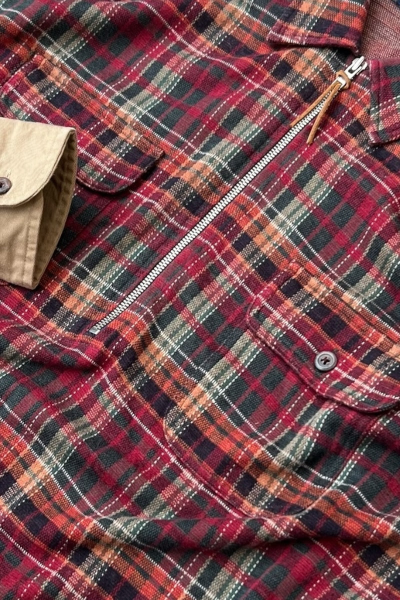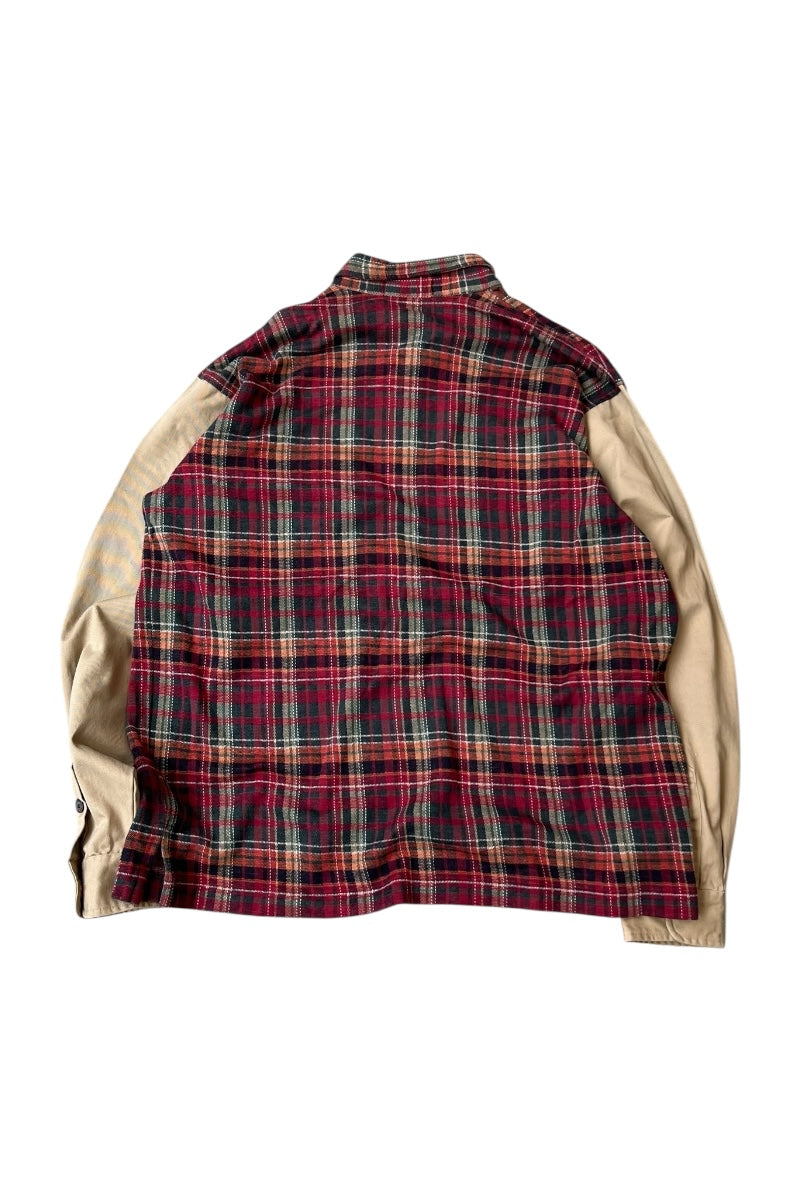 90'S L/S SWITCHING CHECK HALF ZIP SHIRT / RED [SIZE: L USED]