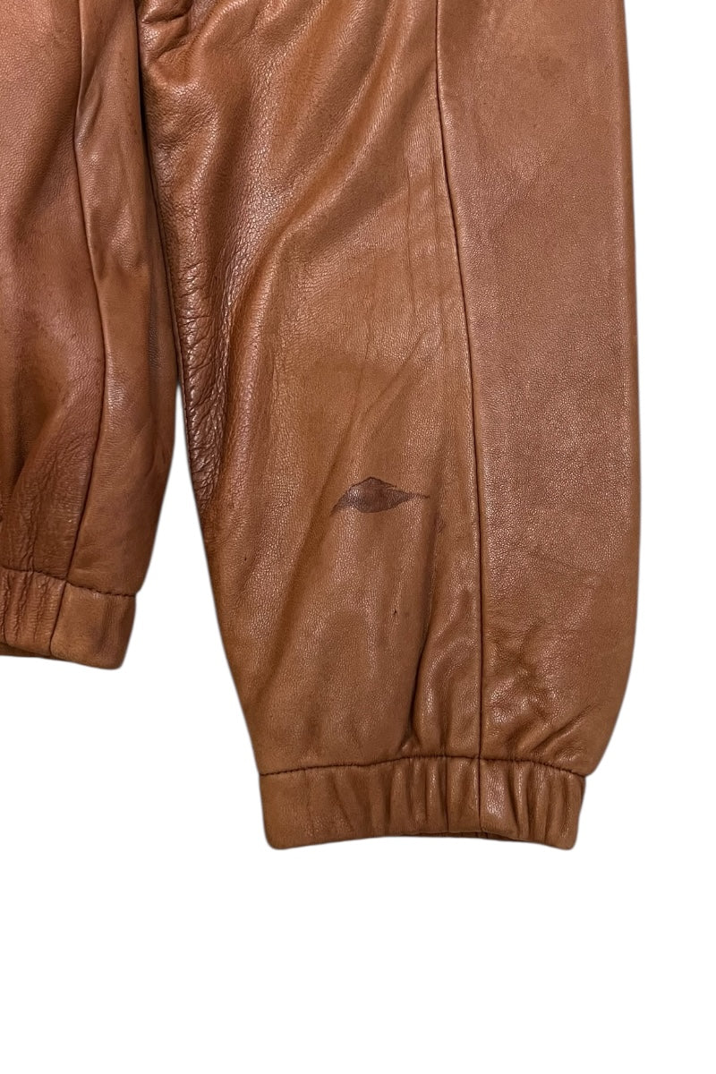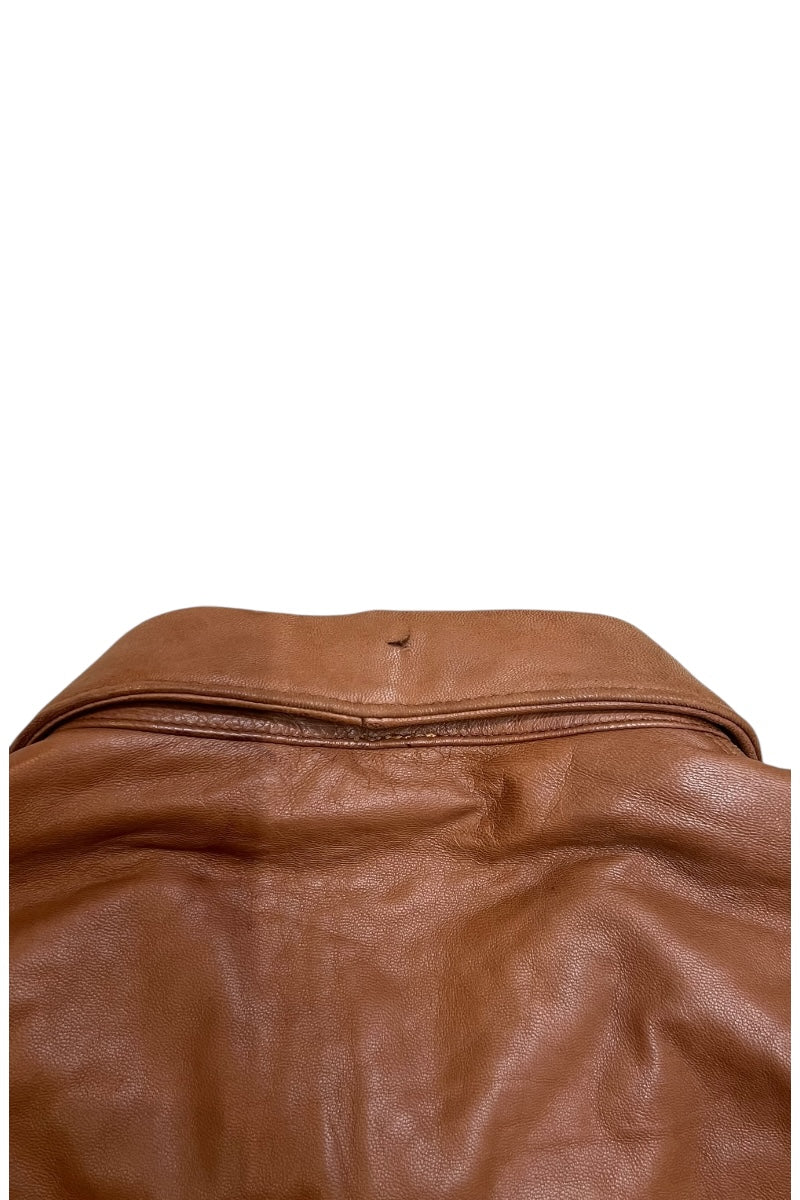 90'S LAMB LEATHER ZIP JACKET / BROWN [SIZE: M USED]