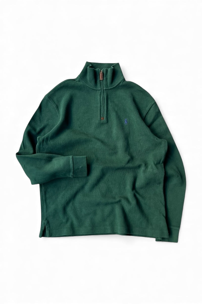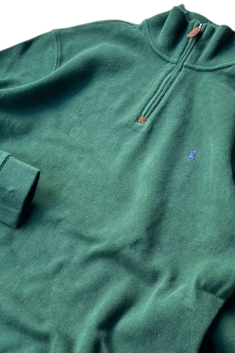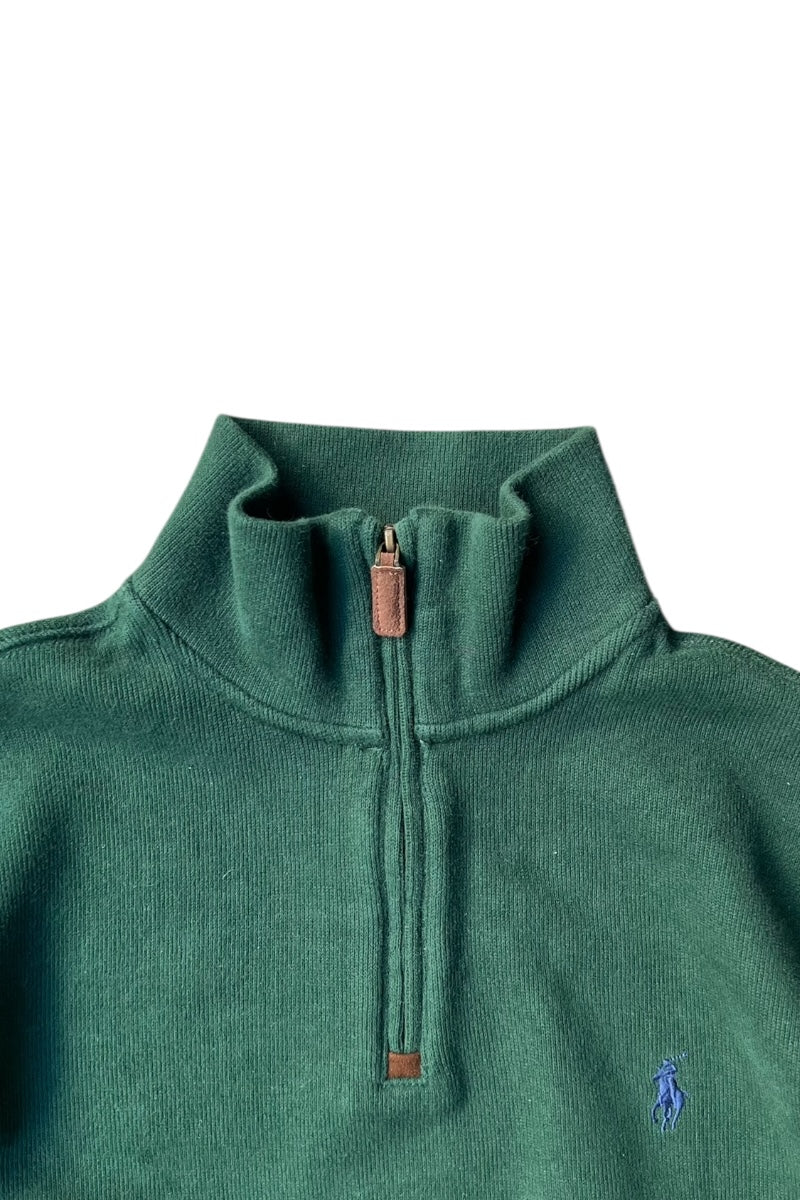 HALF-ZIP COTTON KNIT SWEATER / GREEN [SIZE: M USED]