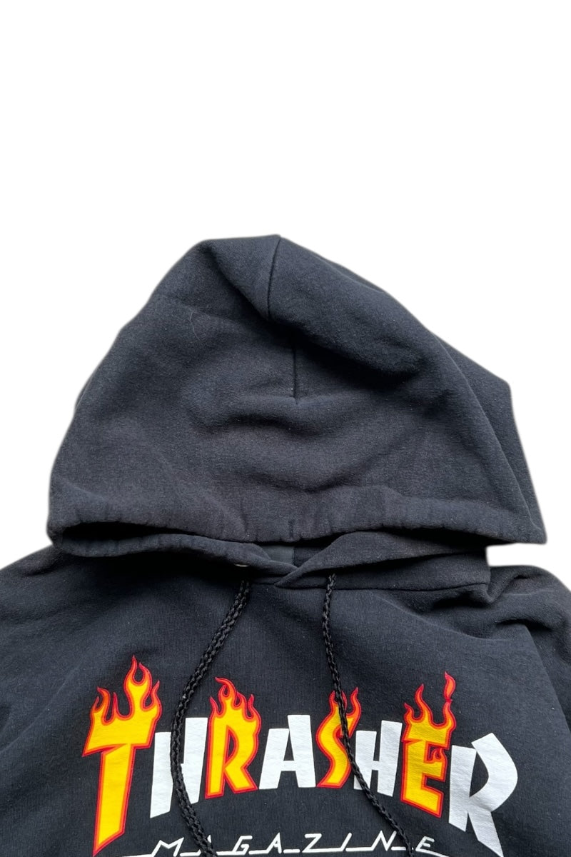 Y2K EARLY 00'S LOGO PRINT HOODIE SWEATSHIRT / BLACK [SIZE: S USED]