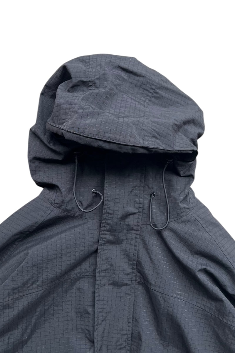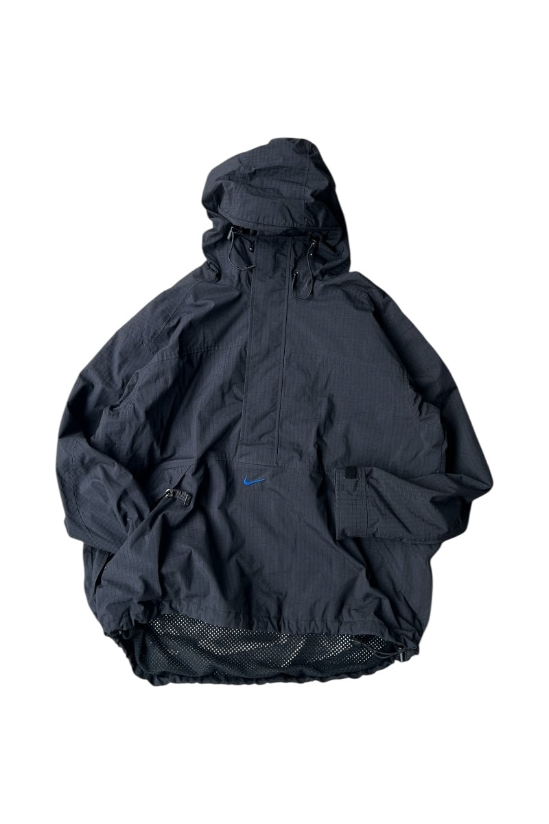 90'S PULL-OVER RIP STOP NYLON HOODIE JACKET / BLACK [SIZE: L USED]