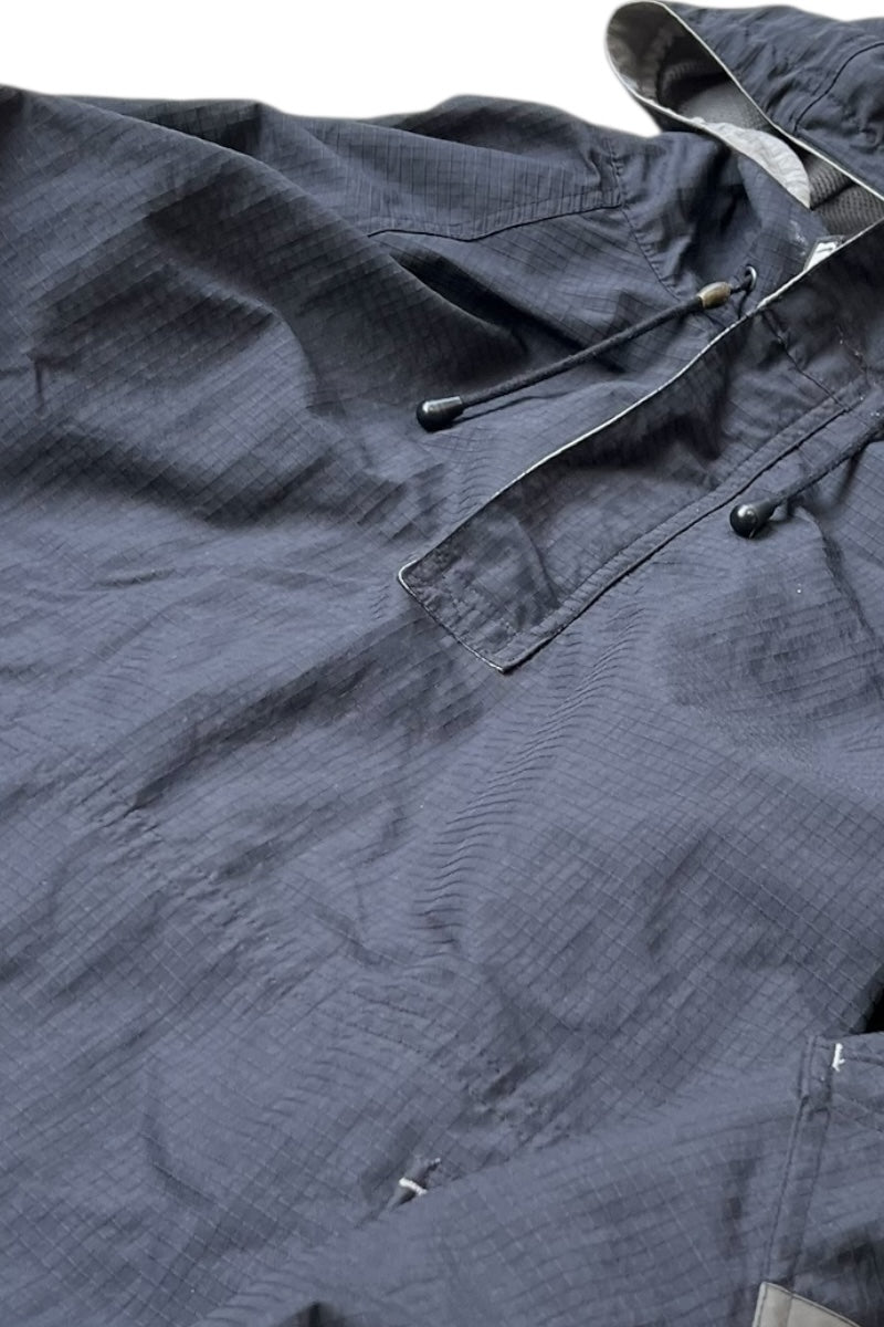 Y2K EARLY 00'S PULL-OVER RIP STOP NYLON HOODIE JACKET / BLACK [SIZE: XL USED]