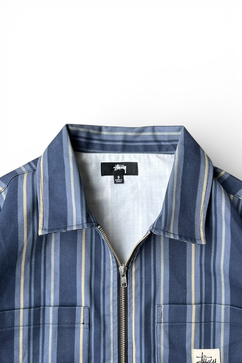 STRIPE ZIP SHIRT JACKET / NAVY [SIZE: S USED]