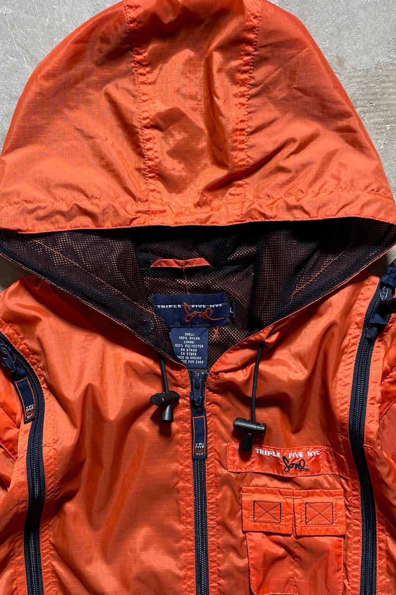 90-00'S 2WAY ZIP UP RIP STOP NYLON HOODIE JACKET / ORANGE [SIZE: L USED]