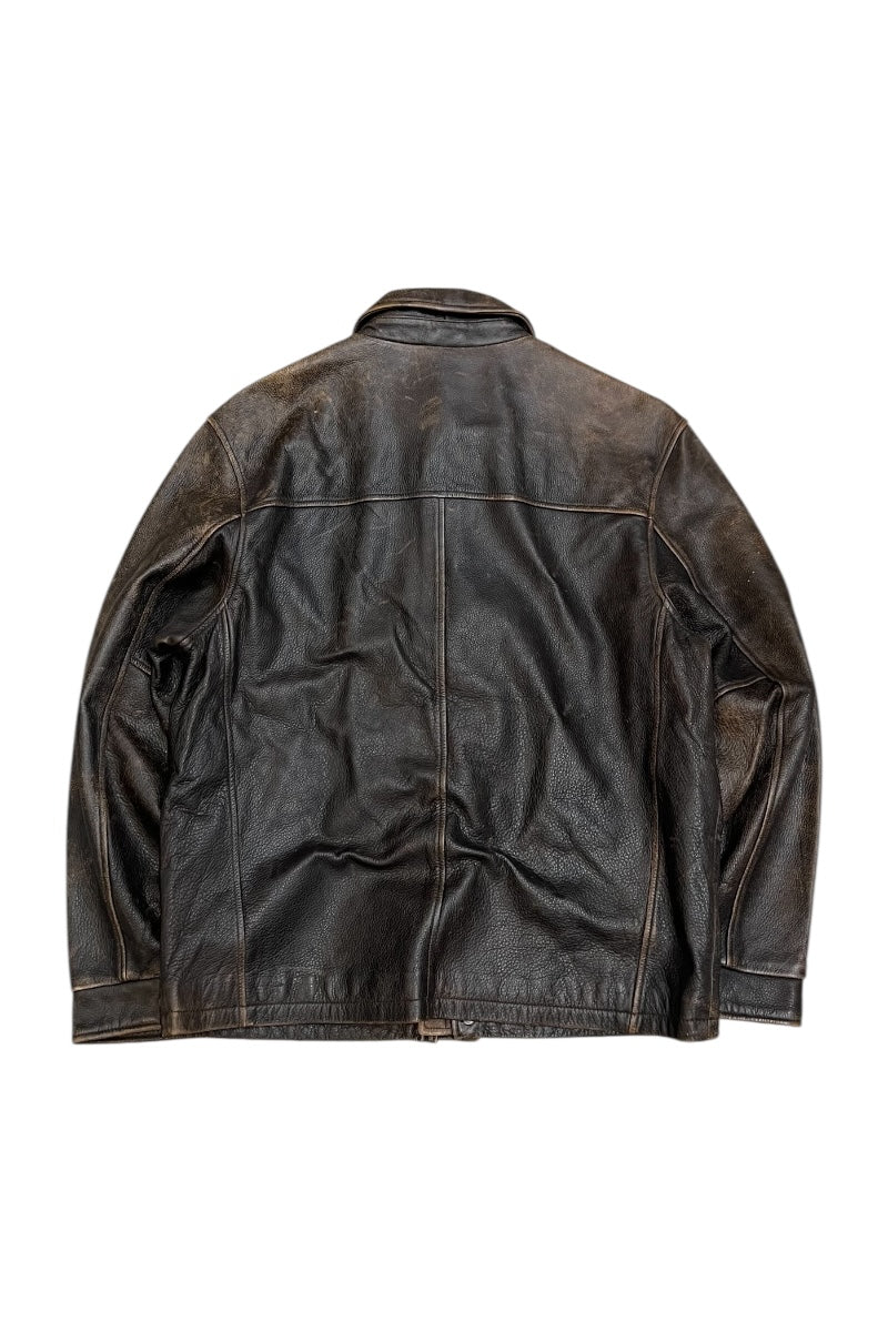 WORN BROWN LEATHER ZIP JACKET / BROWN [SIZE: M USED]