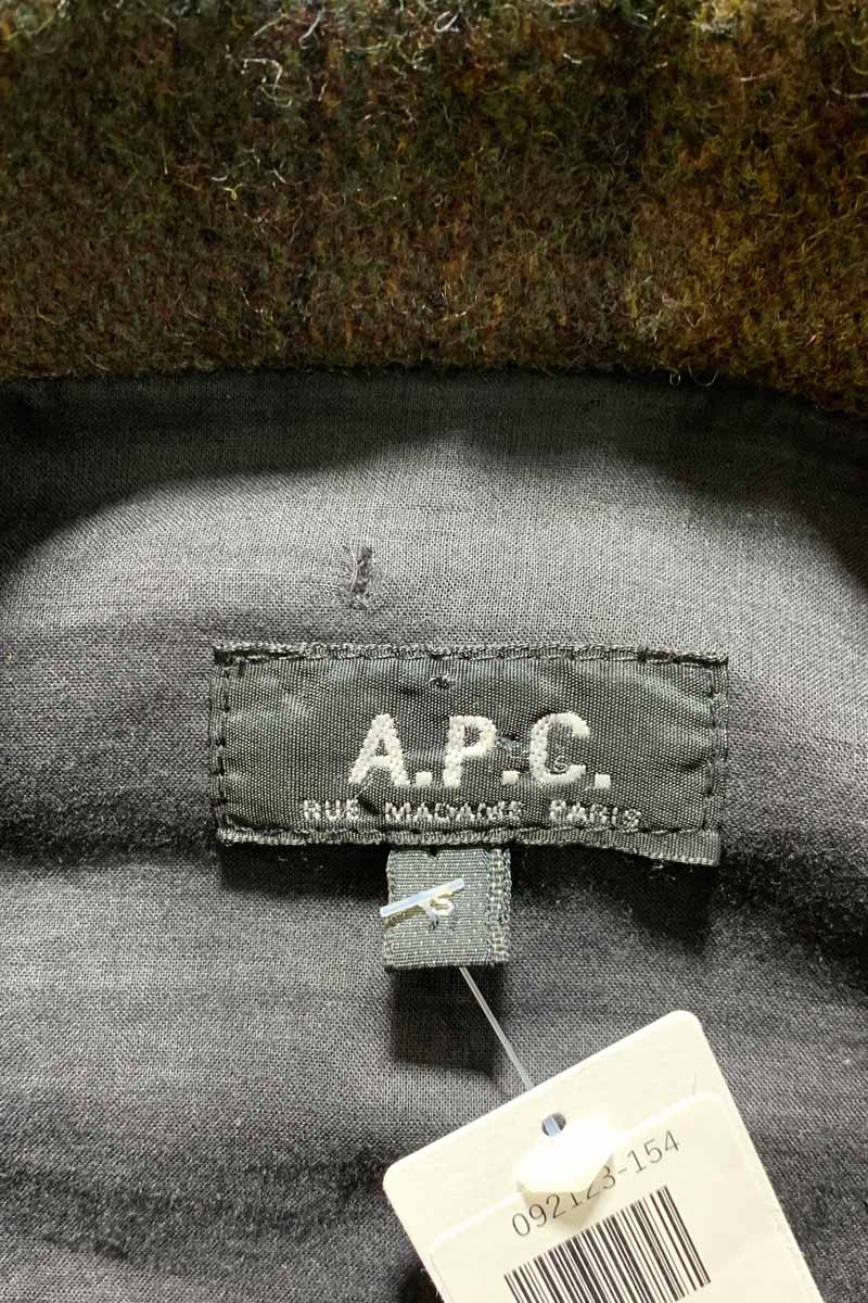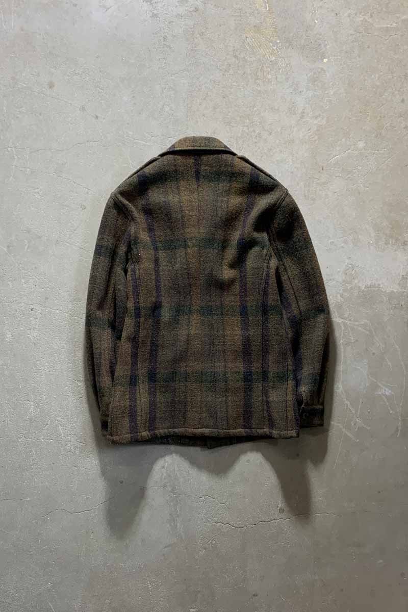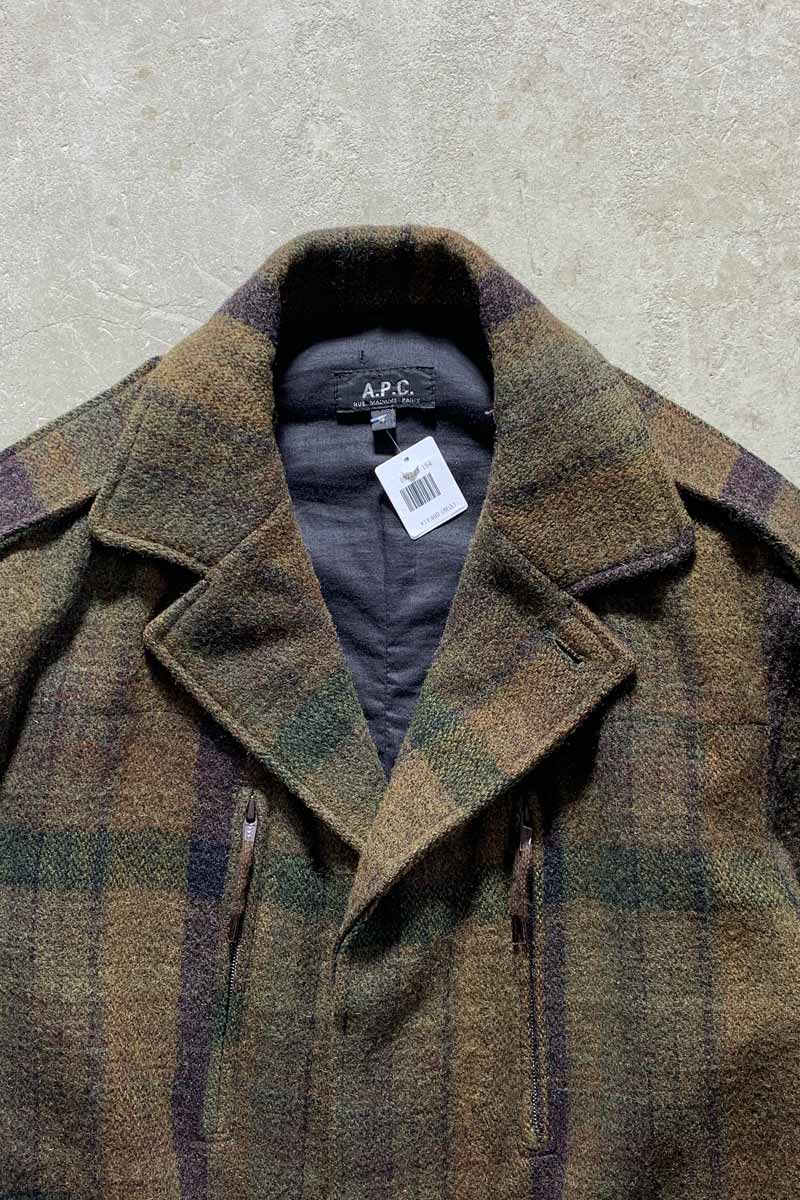 CHECK WOOL MIDDLE COAT / OLIVE [SIZE: S USED]