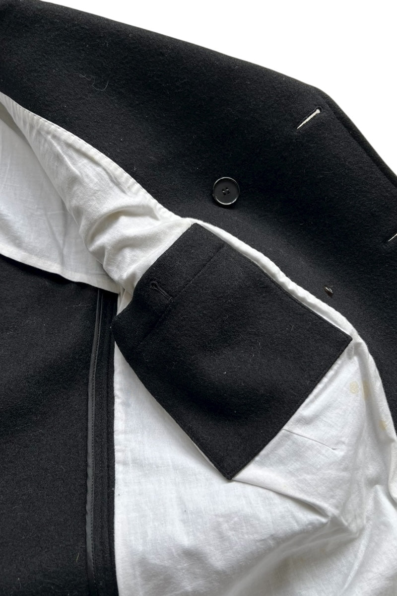 MADE IN ITALY 17AW WOOL & LEATHER PEA COAT / BLACK [SIZE: 46 USED]