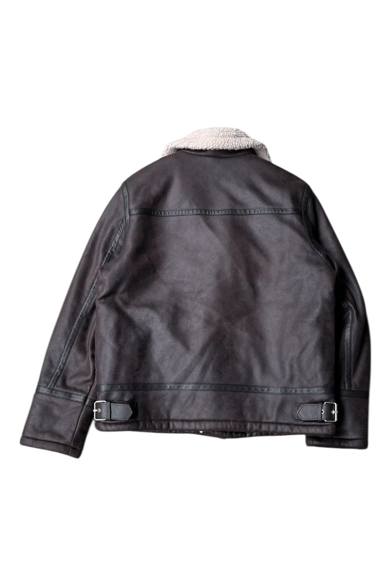 VEGAN LEATHER RIDERS JACKET / BROWN [SIZE: L USED]