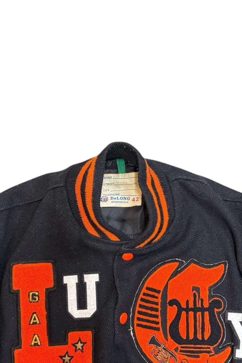 MADE IN USA 80'S WOOL LEATHER STADIUM JACKET / BLACK [SIZE: 42 USED]