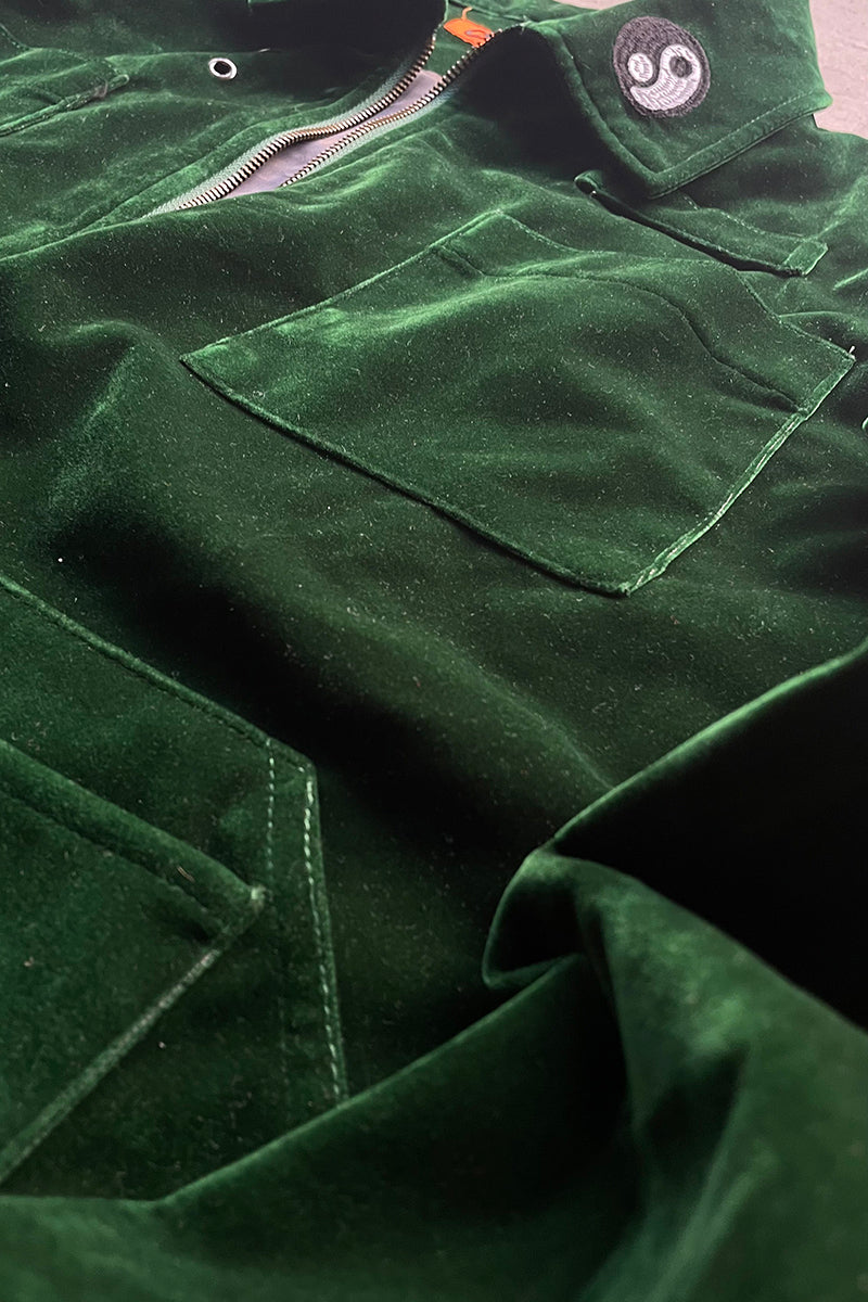 VELOUR ZIP UP WORK JACKET / GREEN [SIZE: 4 USED]