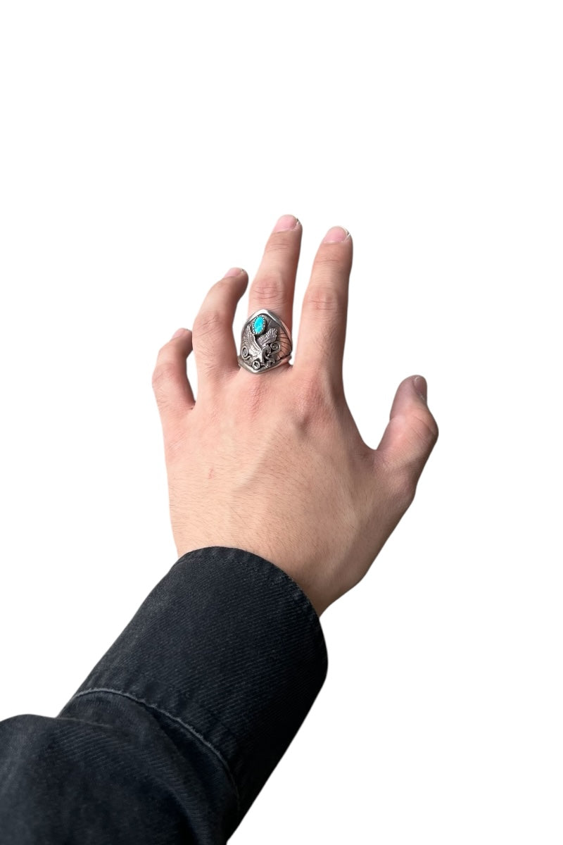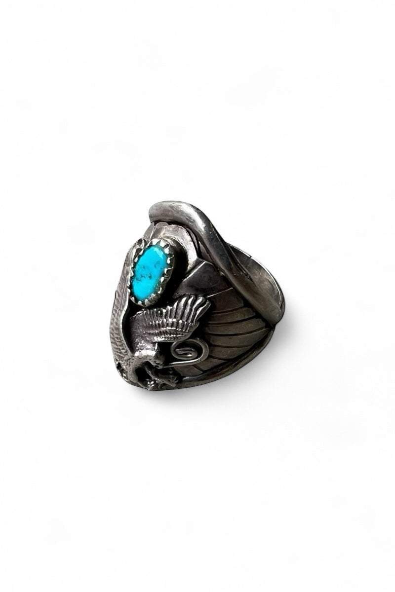 VINTAGE NATIVE AMERICAN 925 SILVER EAGLE RING W/TURQUOIS / SILVER [SIZE: 21号 USED]