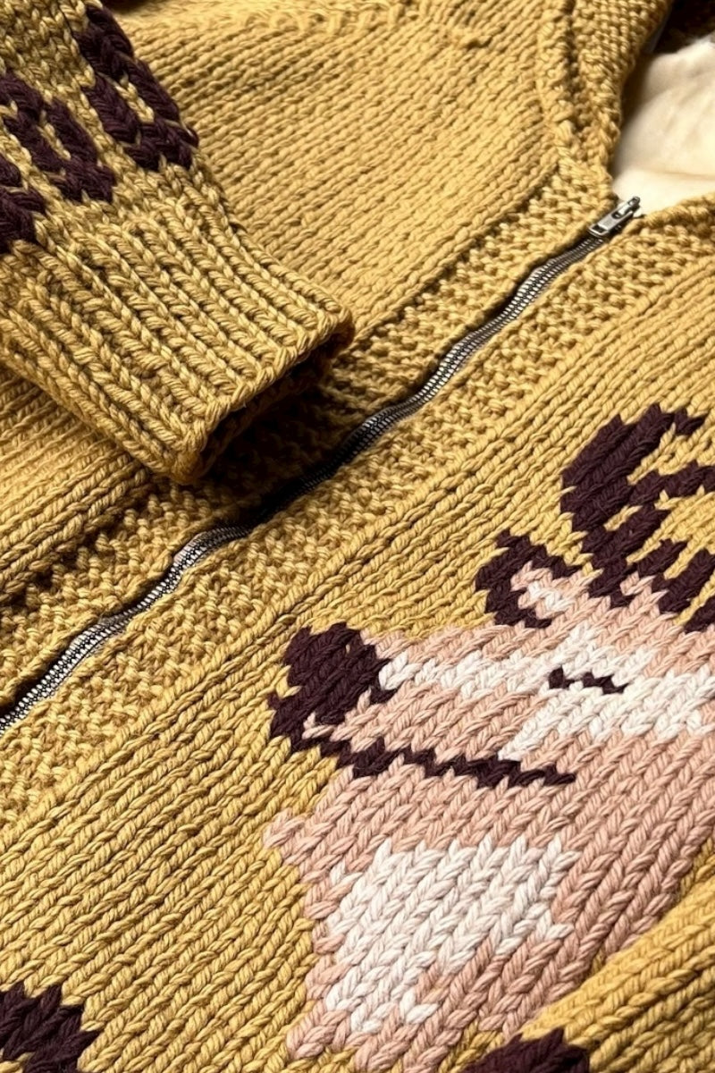 60-70'S COWICHAN KNIT SWAETER / YELLOW [SIZE: L USED]