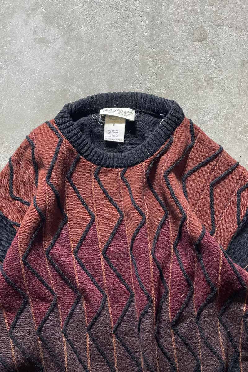 MADE IN ITALY 90'S WOOL ACRYLIC 3D KNIT SWEATER / WINE [SIZE: M USED]