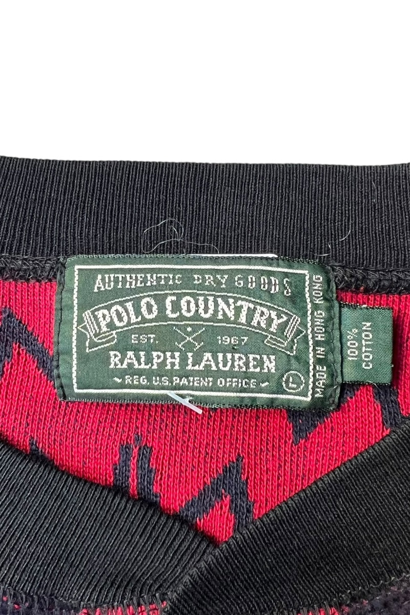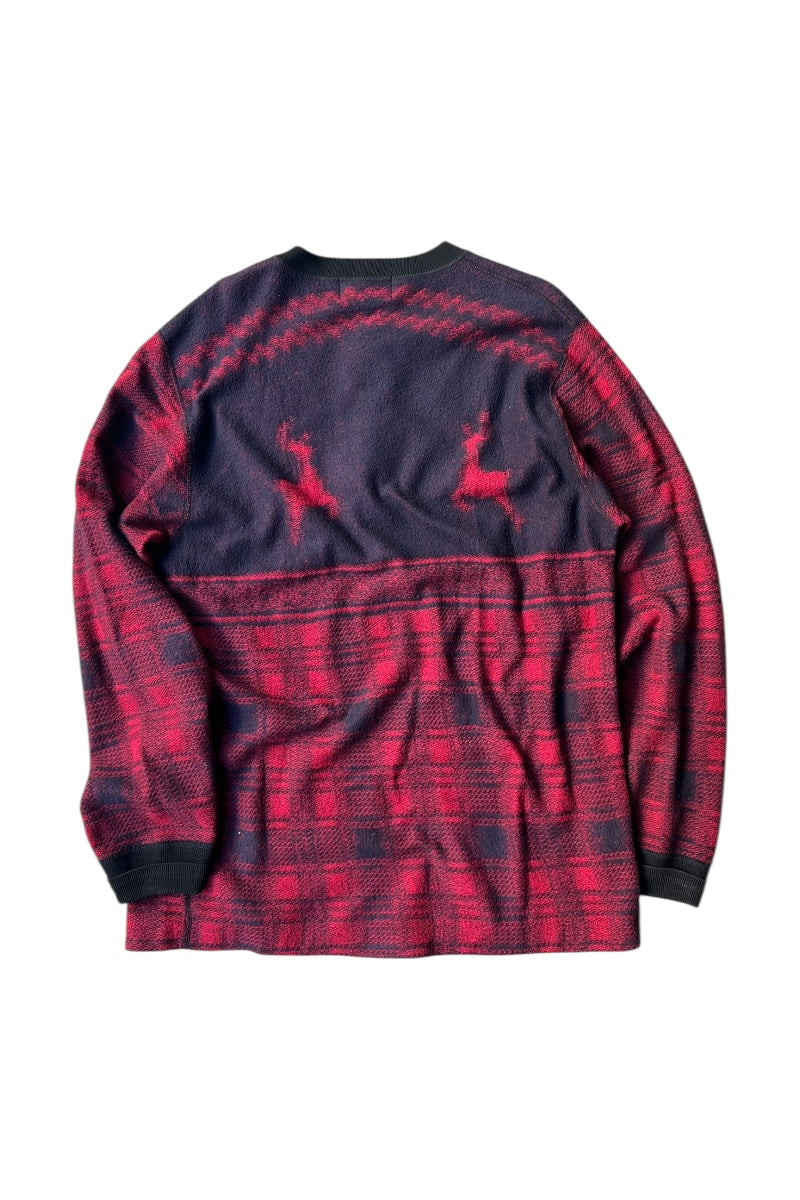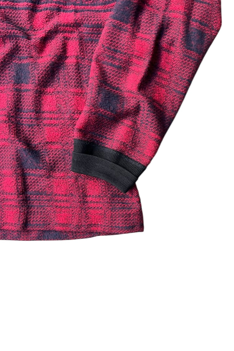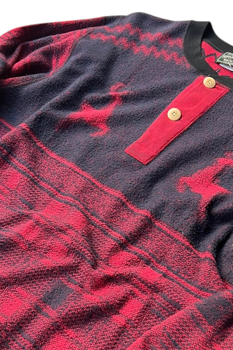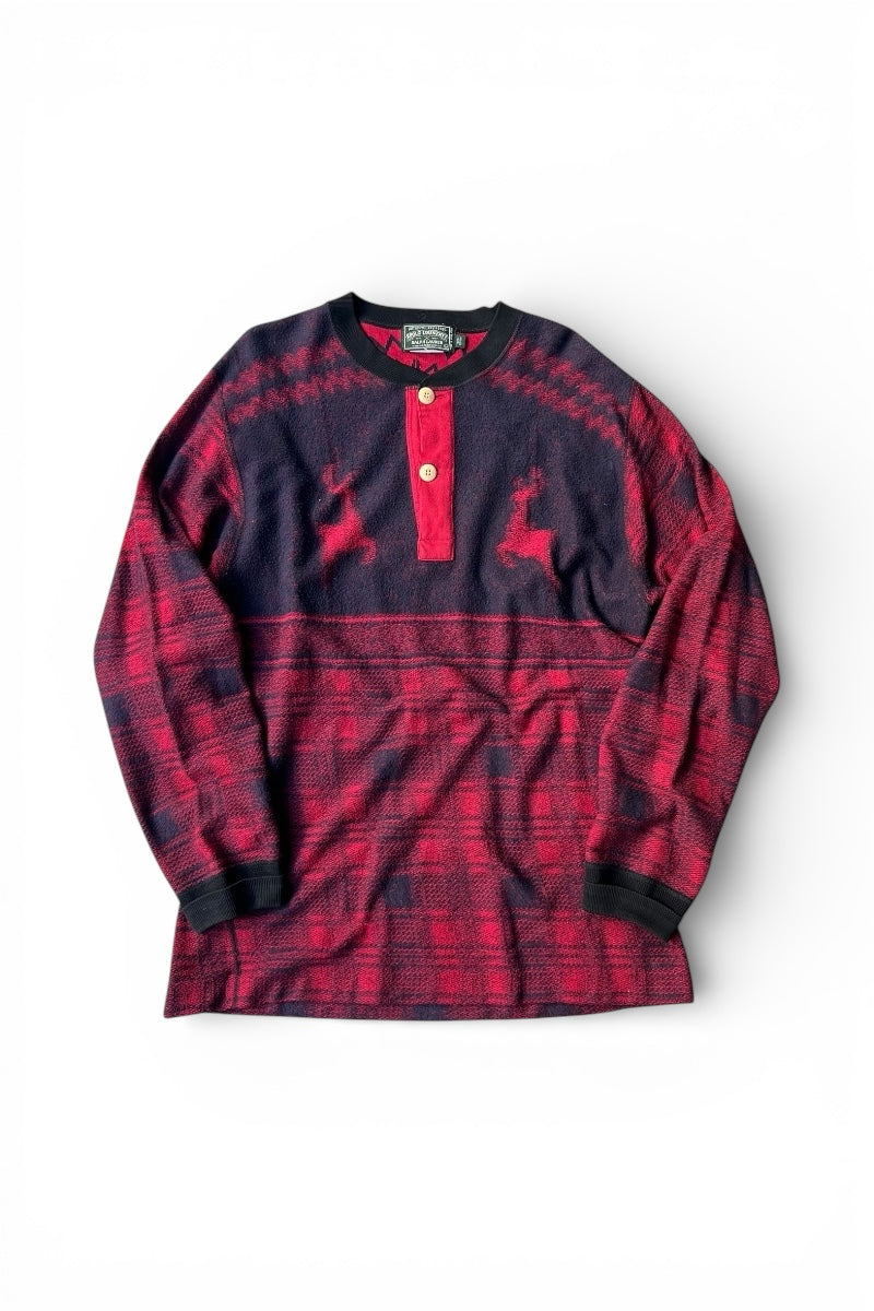 90'S L/S NORDIC HENRY NECK KNIT SWEATER / RED [SIZE: L USED]