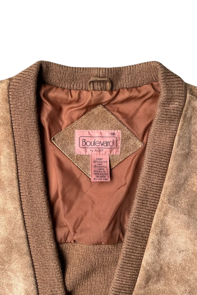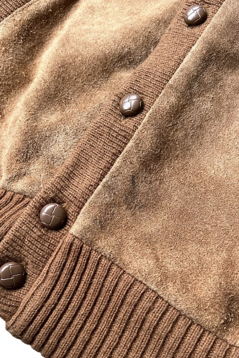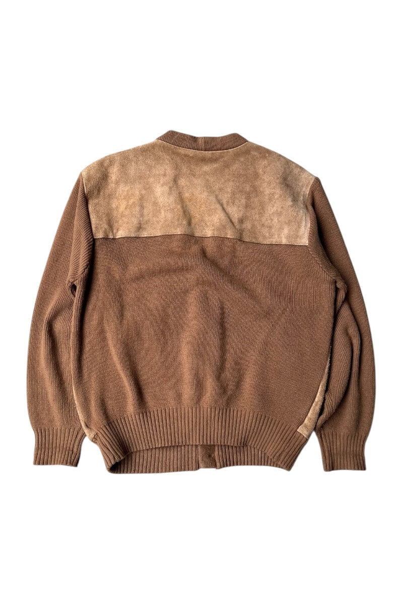 80'S SUEDE KNIT CARDIGAN / BEIGE [SIZE: XL USED]