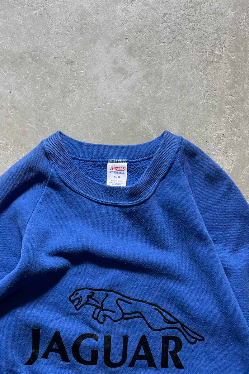 MADE IN USA 80'S JAGUAR PRINT SWEATSHIRT / BLUE [SIZE: XL USED]