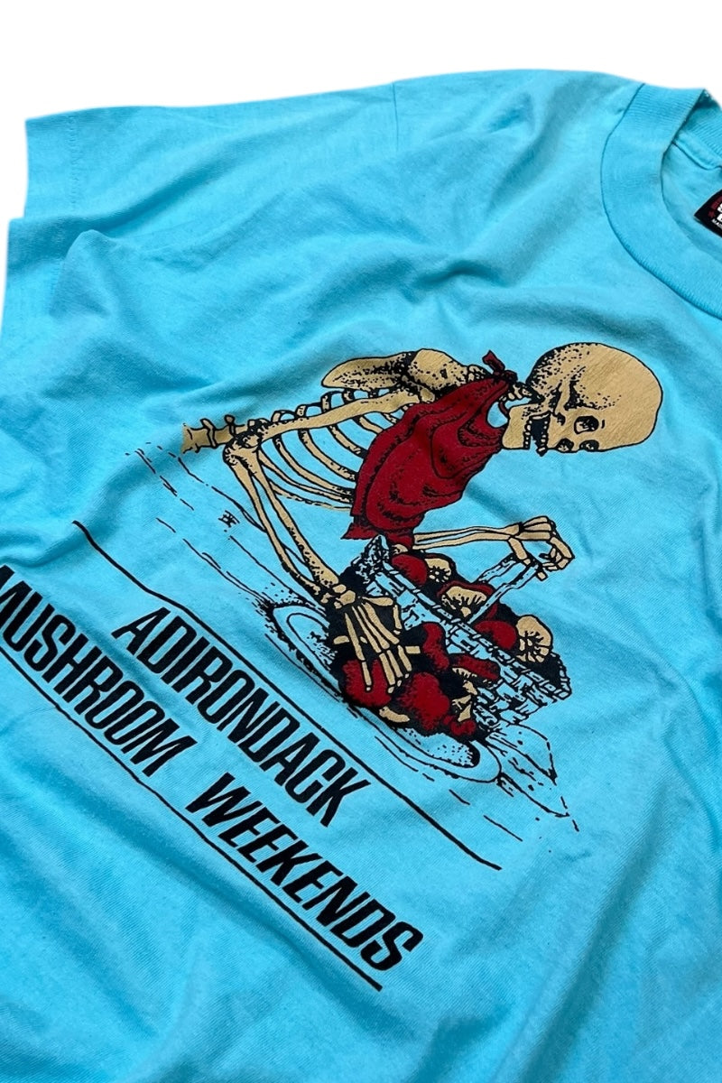 MADE IN USA 90'S ADIRONDACK MUSHROOM WEEKEND T-SHIRT / BLUE [SIZE: M USED]