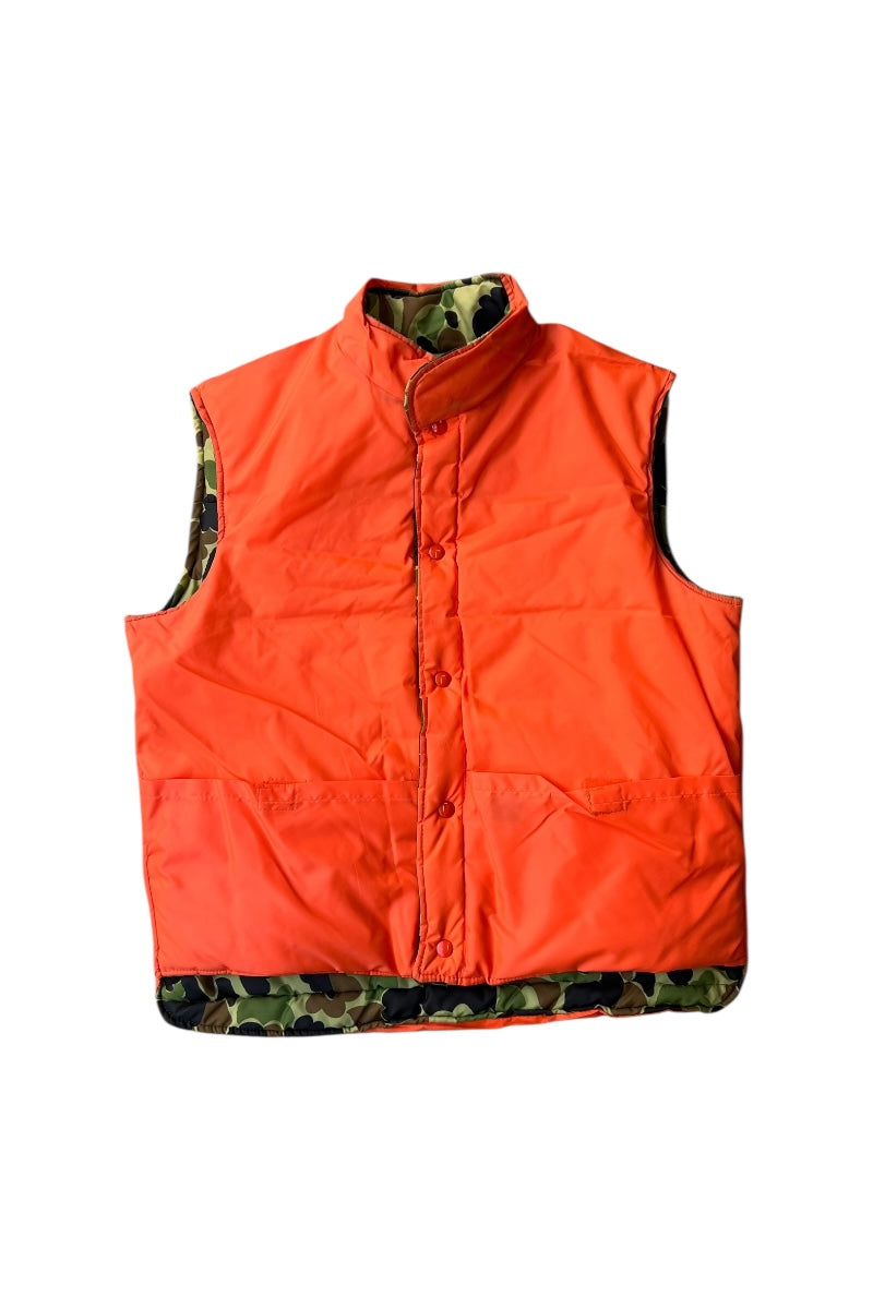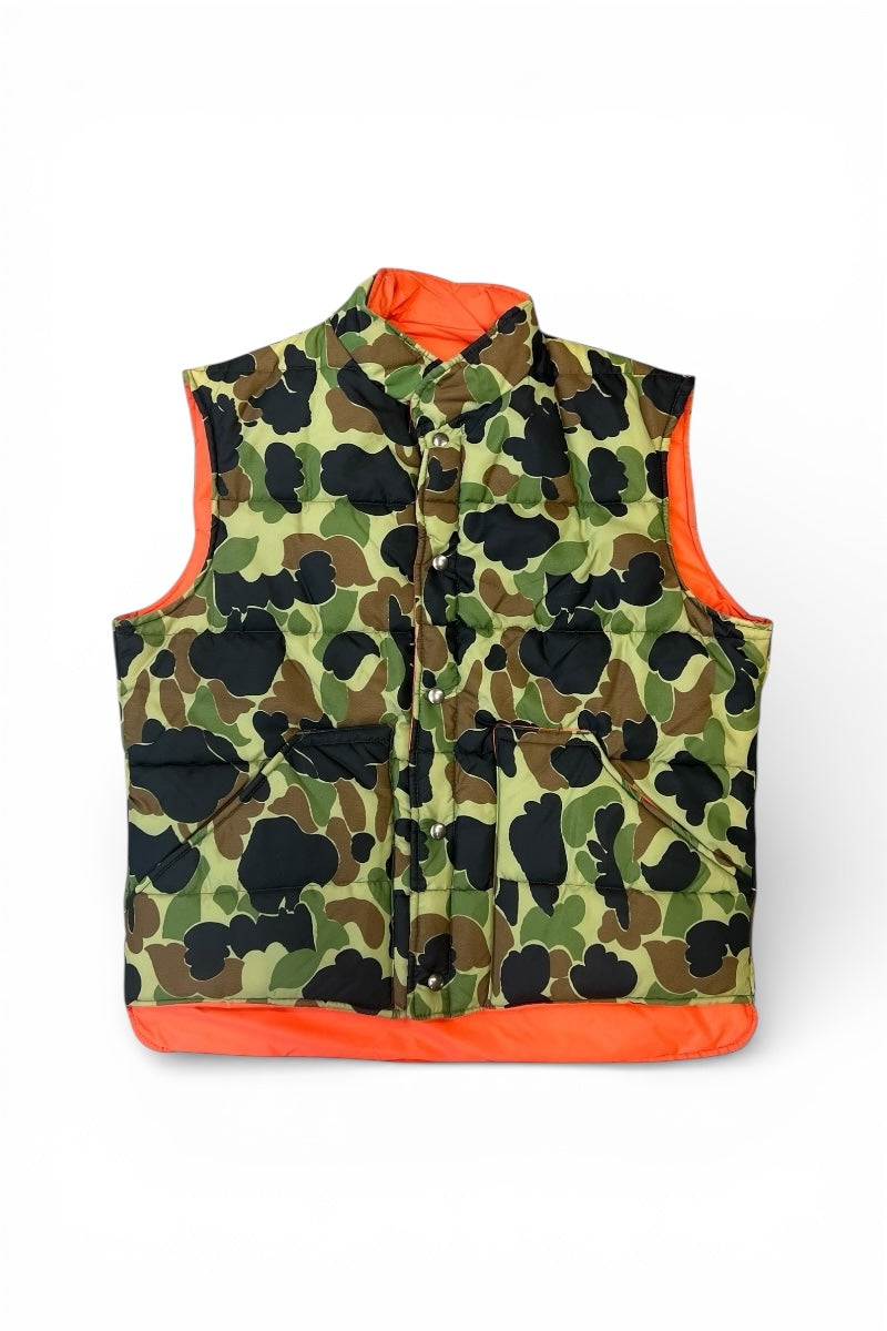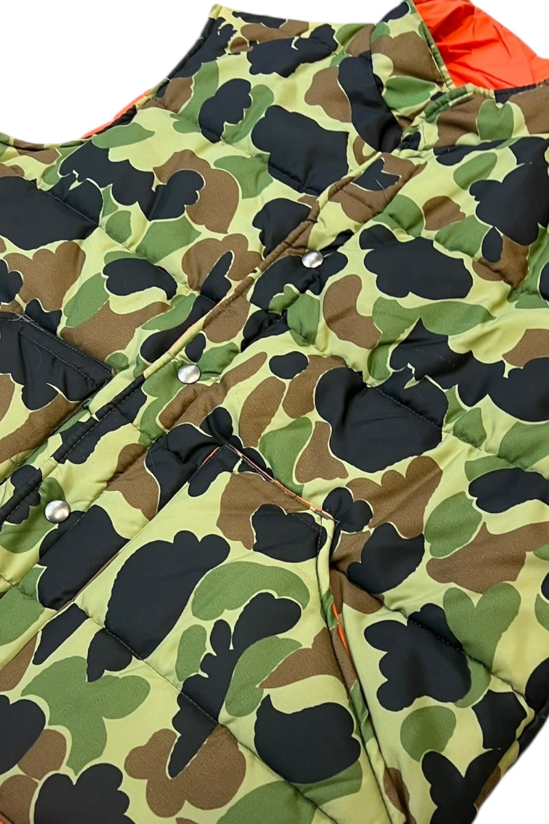 MADE IN USA 70-80'S DUCKHUNT CAMO NYLON PUFF REVERSIBLE VEST / CAMO [SIZE: L USED]