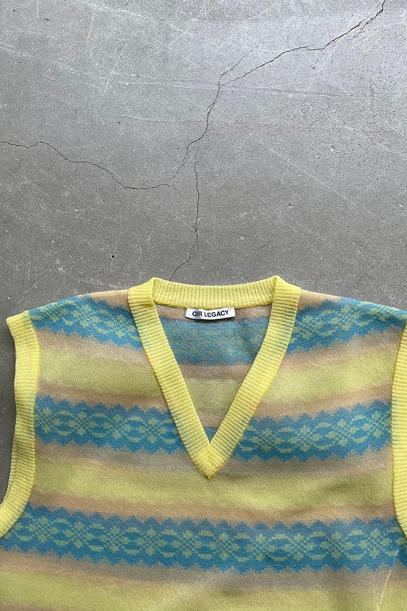 V-NECK SHEER KNIT VEST / YELLOW [SIZE: 48 USED]